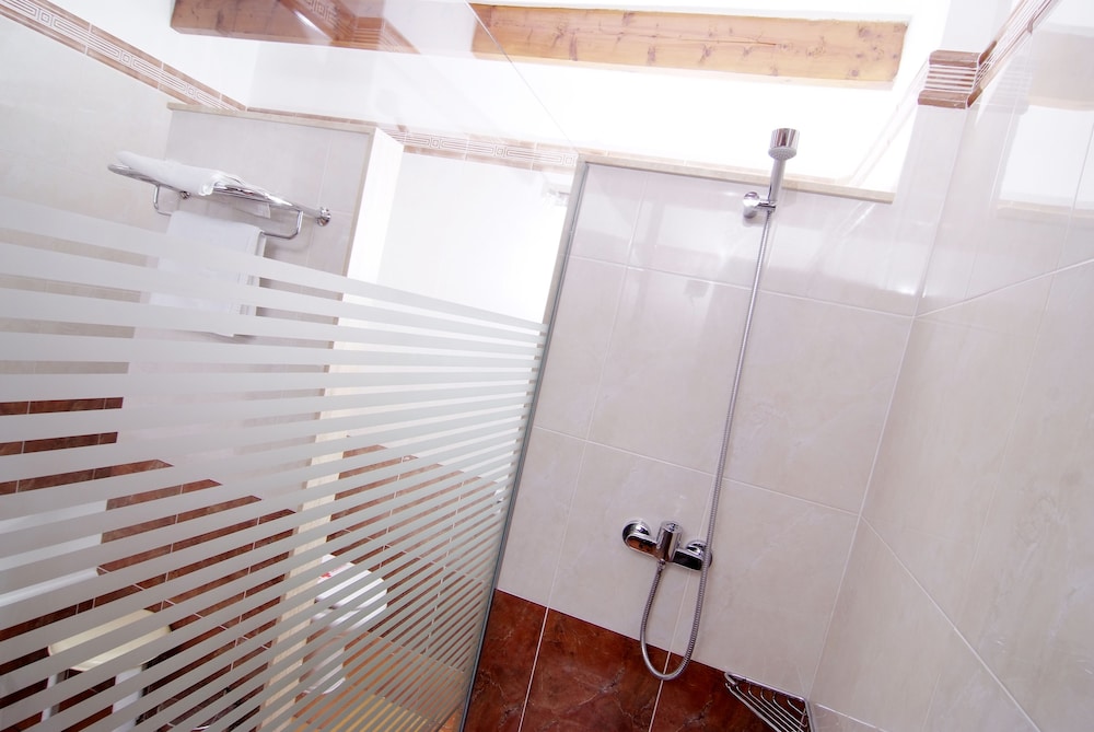 Après avoir attendu environ 1 heure que notre chambre soit prête sans que l'on nous propose autre chose que d'attendre, nous avons découvert notre chambre avec salon attenant, juste au-dessus de la terrasse du restaurant, donc difficile d'ouvrir les fenêtres car vue directe sur les tables et les convives... Et vice-versa. Résultat, chambre assez sombre et triste, malgré la vue sur le village et les montagnes. Mauvais état de la douche, dommage pour un 4 étoiles. Literie très très dure, mais certains préfèrent cela. Portes qui grincent ou qu'on ne peut pas ouvrir complètement car derrière, il y a la table de nuit. Petit-déjeuner très quelconque et personnel qui change la commande sans demander notre avis, en nous disant simplement "il n'y en a plus". D'accord, mais on demande, non ? Surtout dans un 4 étoiles. Le restaurant ne nous a pas sublimé non plus. La piscine extérieure avec vue sur la montagne est très agréable.