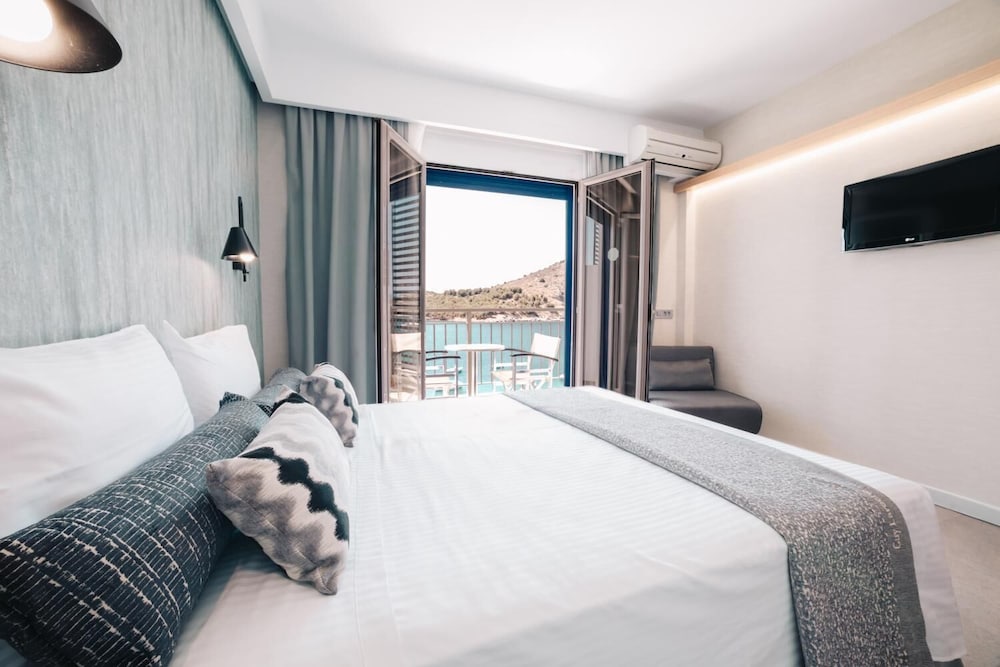 Great position on the beach, by the harbour. Very friendly and helpful staff. Good standard of rooms for a small Greek hotel. Lots to do in the area and lots of tavernas close by.