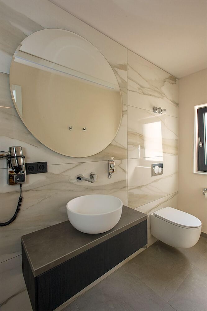Das Bad war mit dem alten Fliesenspiegel wirklich schön neu gemacht.