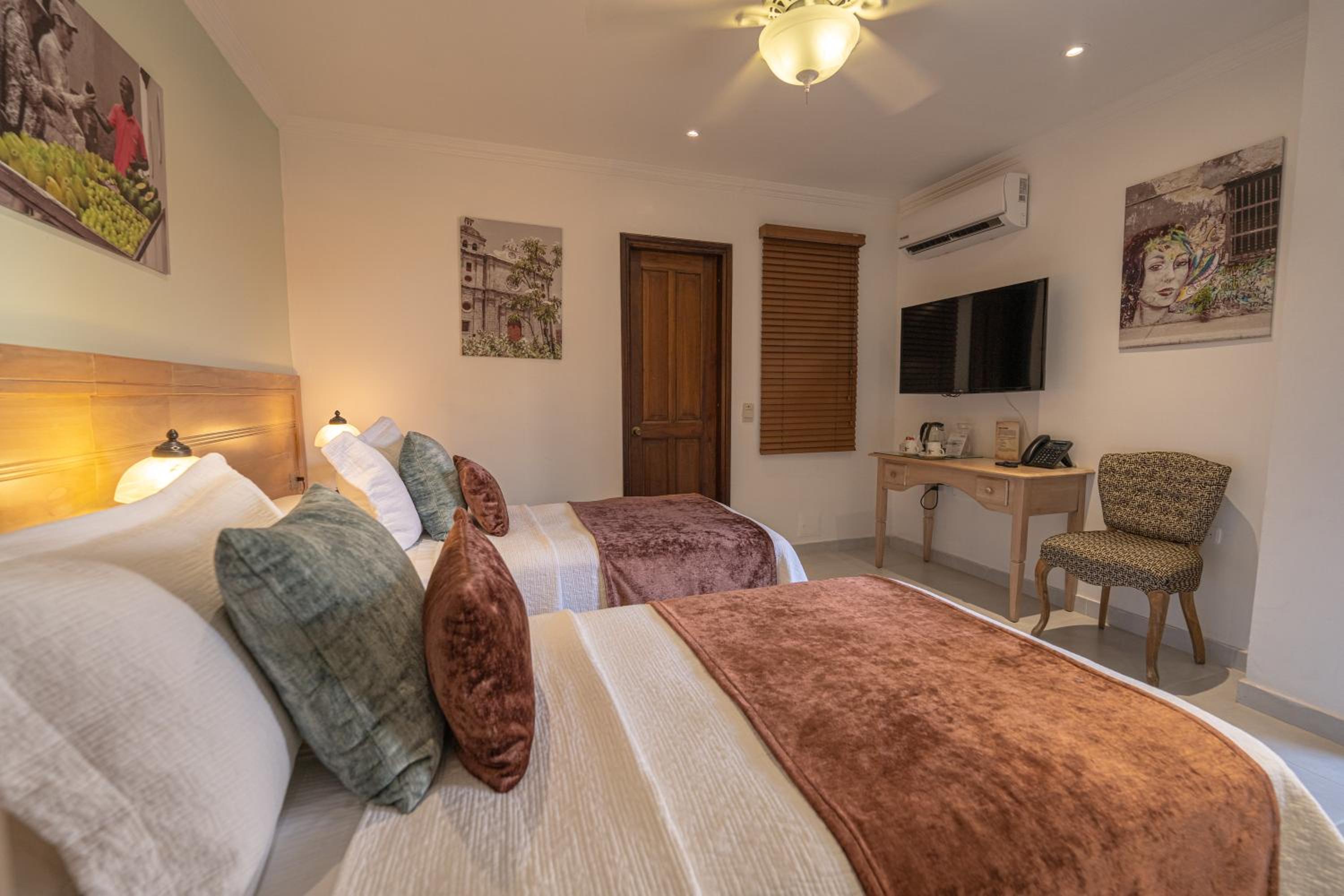 Featuring restored tiled floors and hand-crafted furniture, the classical rooms at Casa La Fe provide a comfortable stay with air conditioning, Wi-Fi, and satellite TV.