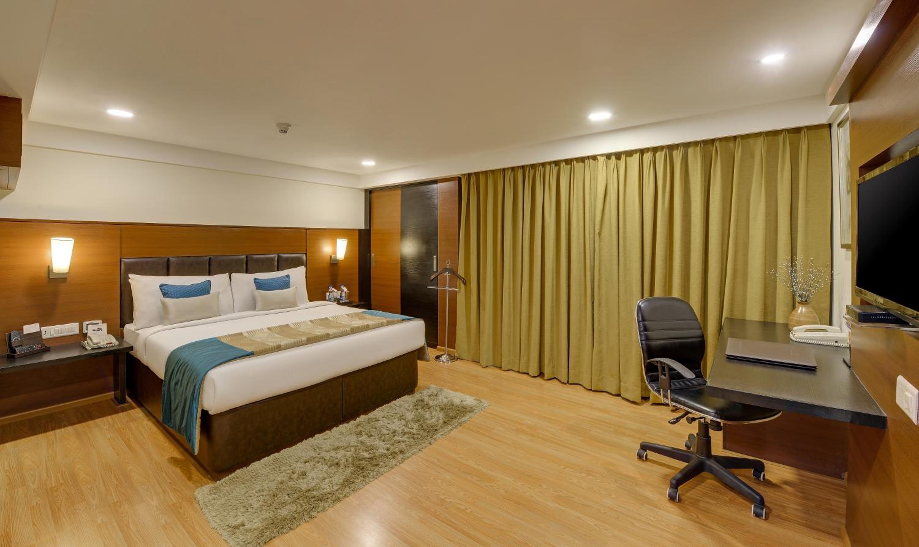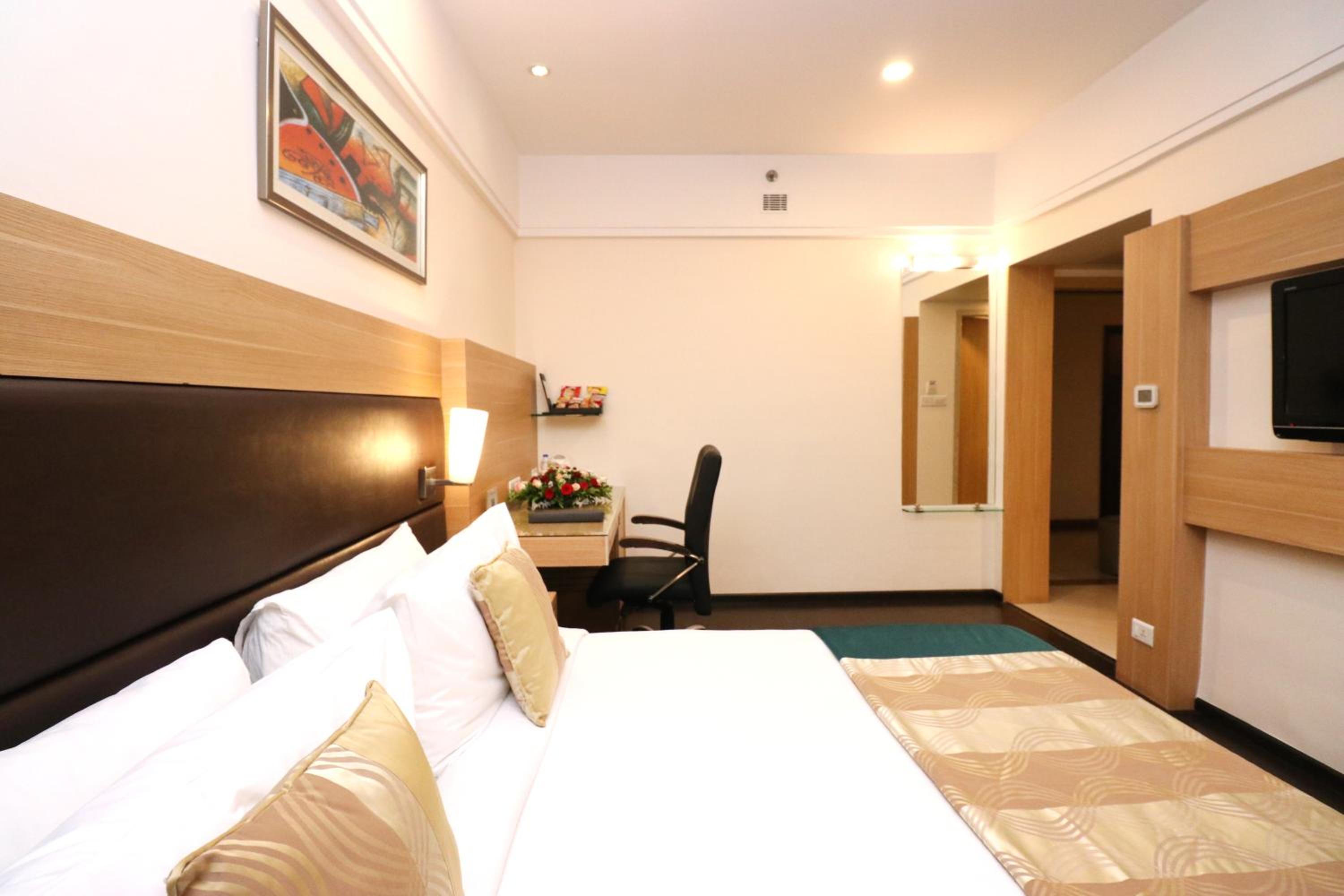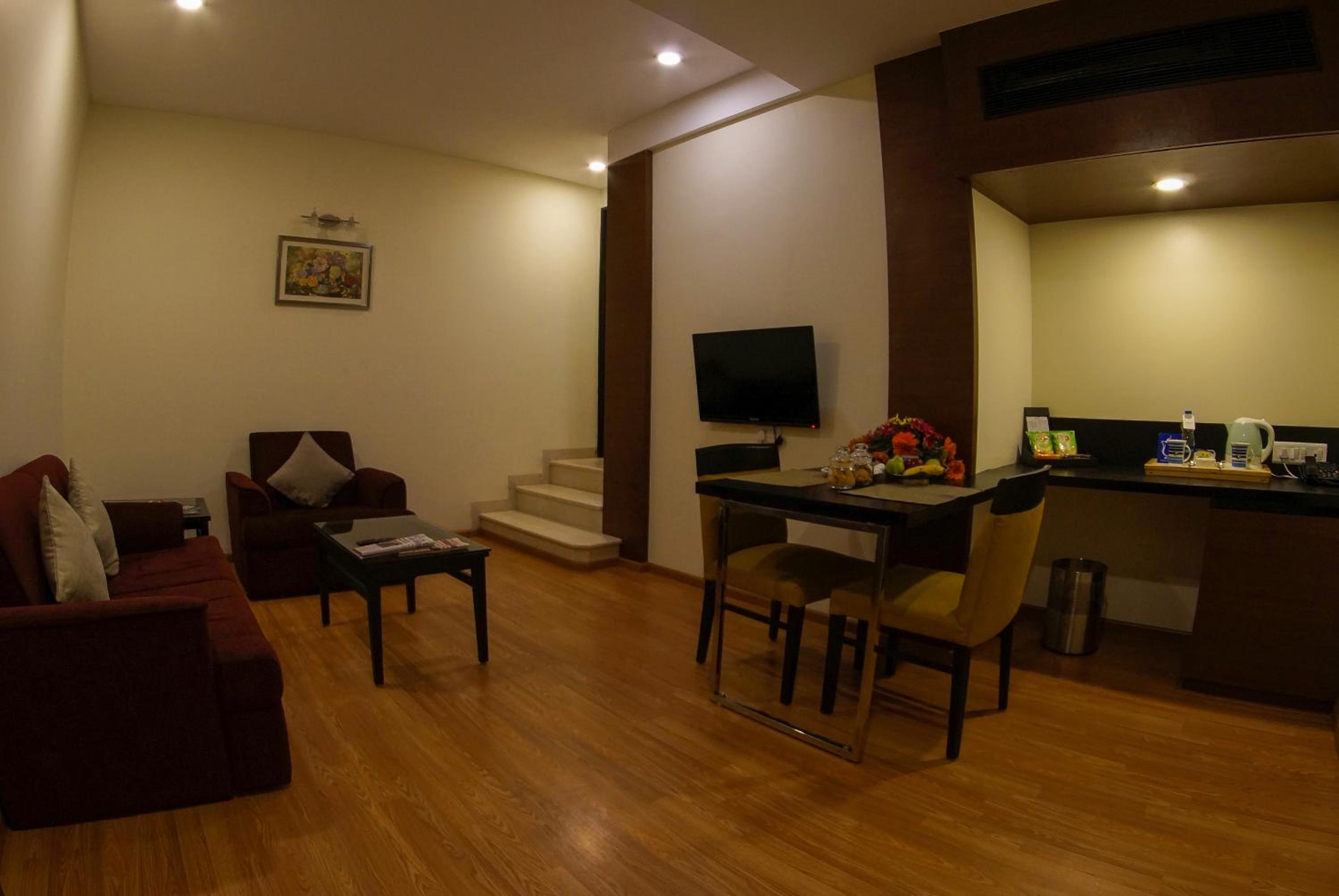 Modern Rooms with Amenities: Experience the comfort of air-conditioned rooms with hardwood furnishings, a seating area, and modern décor, along with a cable TV for entertainment.