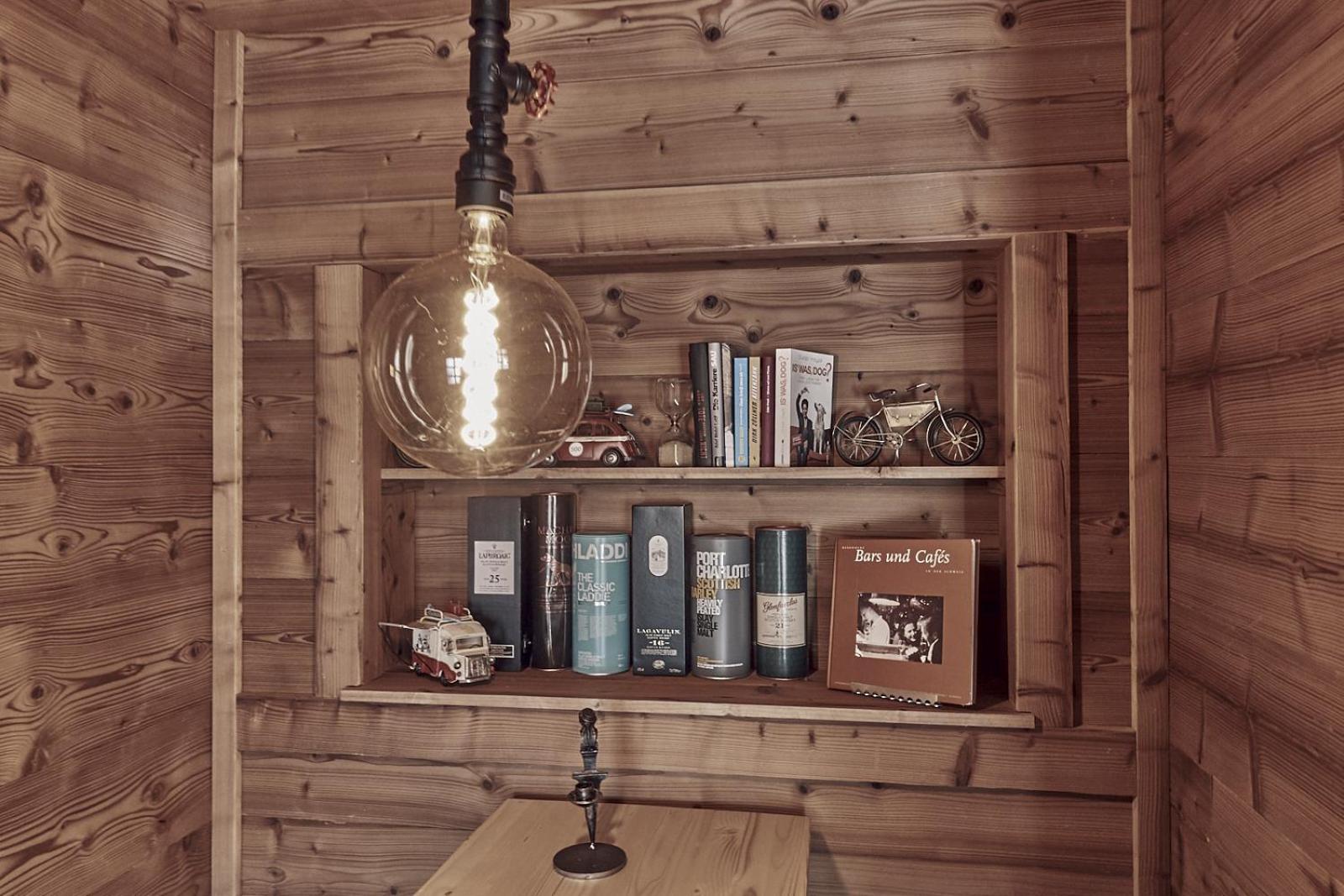 Das Regal oberhalb vom Bett ist heimtückisch. Beim Aufstehen kann man den Kopf anschlagen.