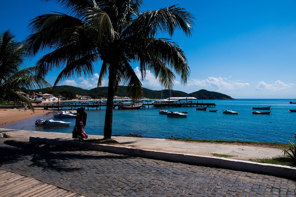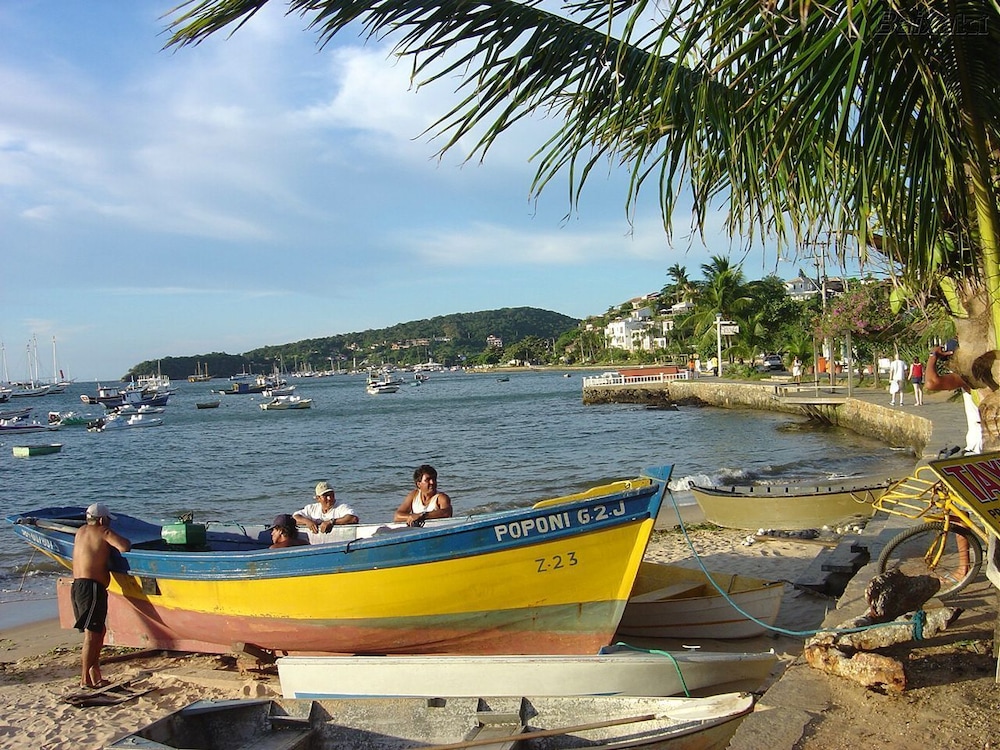 A localização melhor é quase impossível. Não precisei de usar carro para ir visitar quase todas as lindas praias de Búzios, pois Aquatáxis saem do cais (pier), que está pertinho da portaria principal. Os Aquatáxis levam para as praia de Tartaruga, Ossos, Azeda /Azedinha ( a praia mais linda do mundo) e João Fernandes. Pode-se caminhar até as praias do Forno(600m) , Brava (800m) e Ferradura ( 1200m da portaria principal). Para os surfistas, a praia de Geribá (3000m de distância) é ideal.