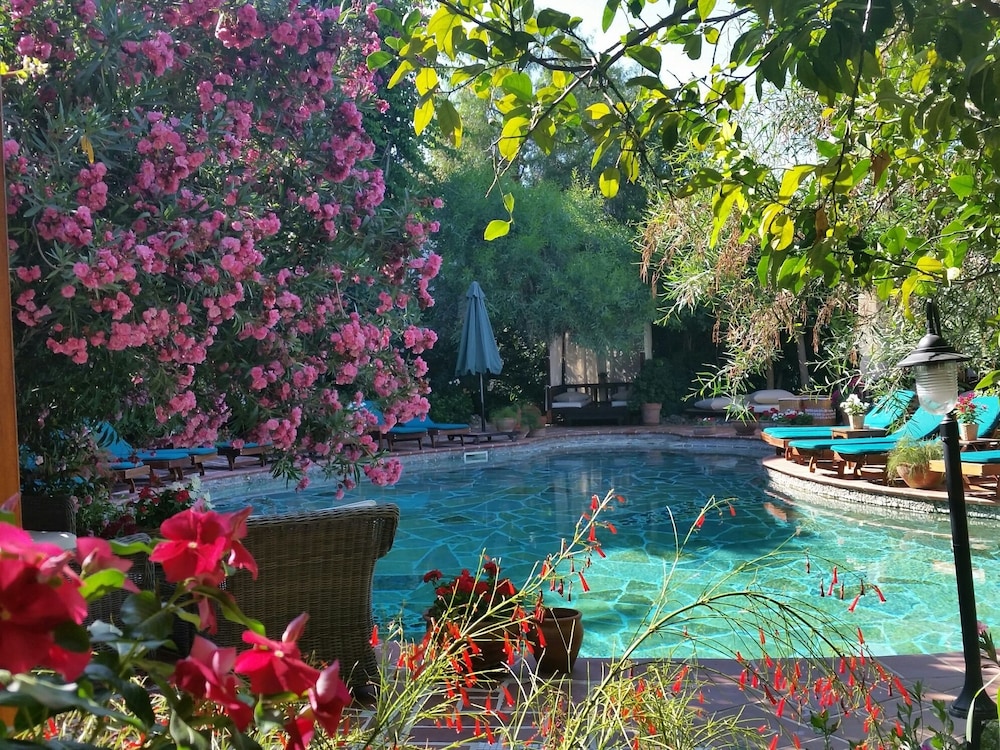 Beautiful garden style hotel with a beautiful pool and rooftop restaurant overlooking the entire city of boardroom