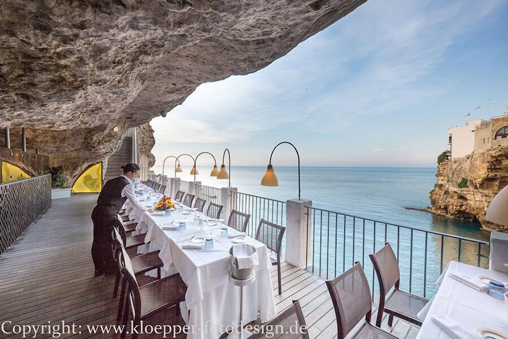 I normally don't post reviews, but had to make an exception for this hotel. It is amazing! Yes, expensive, but the property is unique, and worth it! An unforgetable experience. The staff bends over backwards to take care of your every need. The rooms have views looking right down to the grotto and out to the Adriatic Sea. Like being on a cruise ship. Our room was one of the most modern I've ever stayed in with remote controlled lighting, curtains, music and climate control. The amenities are all top-notch. The town of Polignano a Mare is beautiful. About 35 minutes south of Bari. The people are so friendly. We ate at the restaurant in the cave below the hotel and had a once-in-a-lifetime dining experience. I was a little concerned based on some online reviews about the restaurant, but don't let those scare you away, definitely check it out. The restaurant staff was 10/10, with multiple people tending to us through the amazing meal. If you are coming to Italy this place should be on your list of stops.