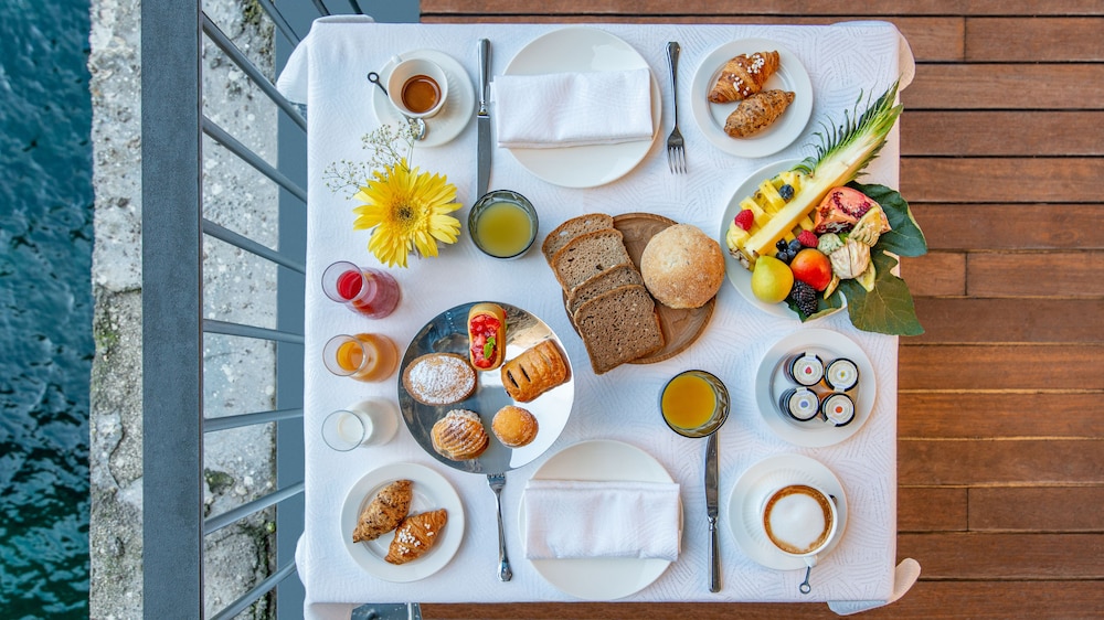 Price of rooms reflect an unmatched view and location. But the quality of breakfast and dinner were disappointing. If you like a stale croissant with the most amazing view for 50 euros- this is the hotel. Importantly, the worst part of the hotel was the staff. No one went beyond greeting to do anything. The parking is an absolute nightmare to figure out and the hotel never emailed or made us aware of the circumstances. So all around, not the best value for the incredibly expensive price- other than the view. Our daughter wanted to come join us for one night, and not only was the hotel completely reluctant to provide a cot, they would not even allow her to come with us in the shuttle to the beach. All five of our family members took a van, while our daughter had to take a TukTuk motorcycle to the beach, where she was also prohibited from entering due to “full capacity”, but there were at least 50% open chairs and umbrellas. The hotel staff was so unwilling to help us find a solution to our daughter having no where to sleep for the night to the point where we felt genuinely uncomfortable with her even entering the hotel with us. We offered to pay extra money for her to enter the beach, or shuttle, or even another cot, but they were unmovable. It was not so much that the policy was so severe, but that the service was so unwilling to assist us in alternative solutions. Our stay was fine until this stain of an experience.