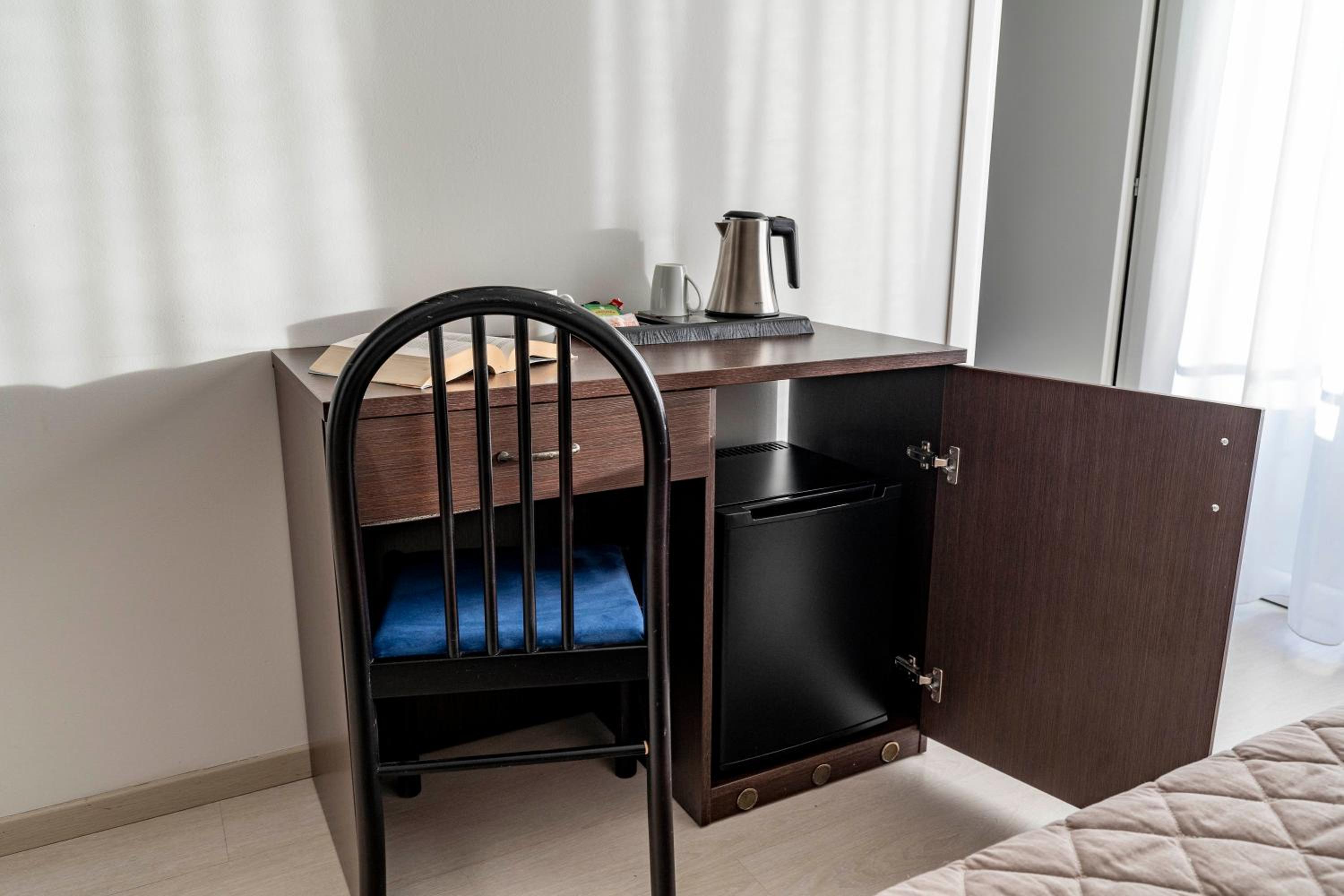 Příjemný hotel, velký pokoj, výborný recepční, který poradil s dopravou, orientací na místě apod., snídaně, která přijde vhod. Jen káva byla trochu slabší, což na Itálii překvapilo, nicméně v okolí je dostatečné množství kaváren 🙂