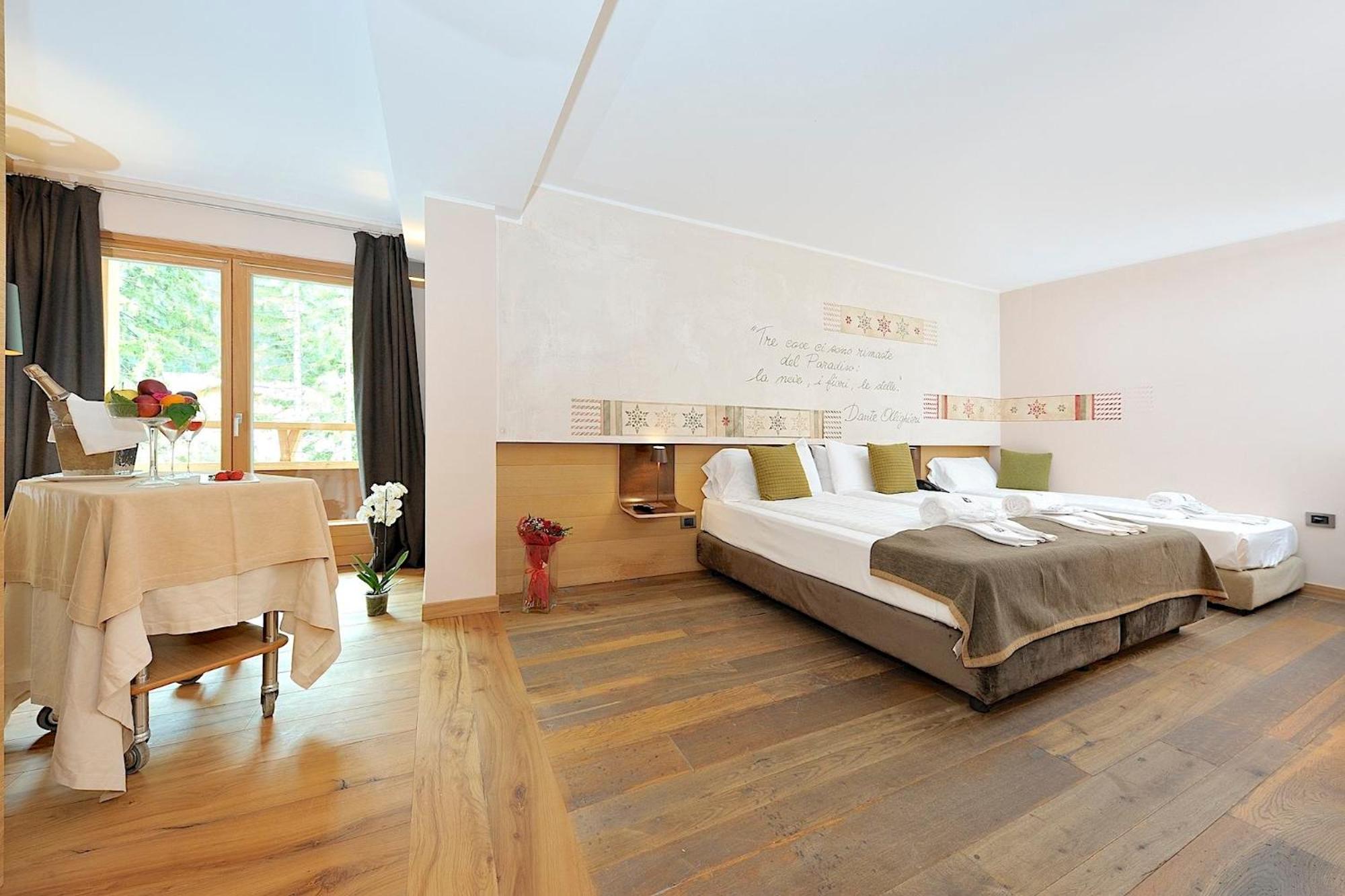 Colazione molto buona con ottima scelta e varietà di dolce e salato con particolare attenzione ai prodotti locali. Staff molto professionale e gentile, disponibile a ogni richiesta. Proprietario molto simpatico, empatico e molto appassionato di Campiglio e, per questo, prodigo di consigli. Vero plus è il servizio navetta a/r per l'accompagnamento alla partenza degli impianti sciistici. Di livello la cena a la carte presso il bistrot interno. Spa molto funzionale e ben tenuta.