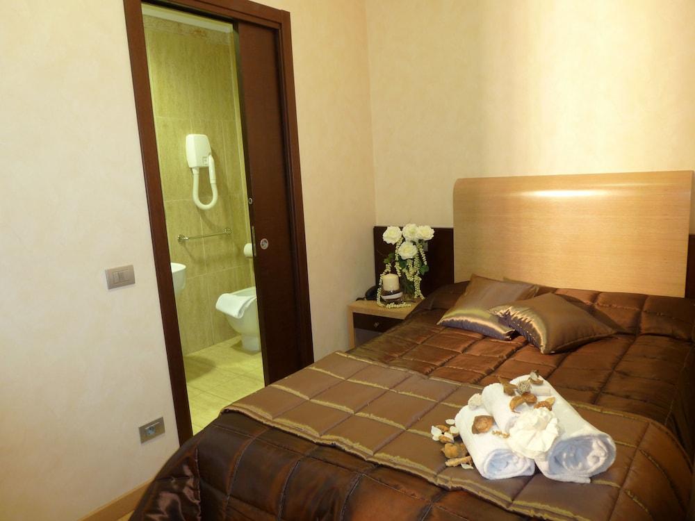The room was small but enough room for the two of us for a night. It was really nice having secure parking! Staff was very friendly and helpful during check in. Would definitely stay here again before an early flight out of Rome.