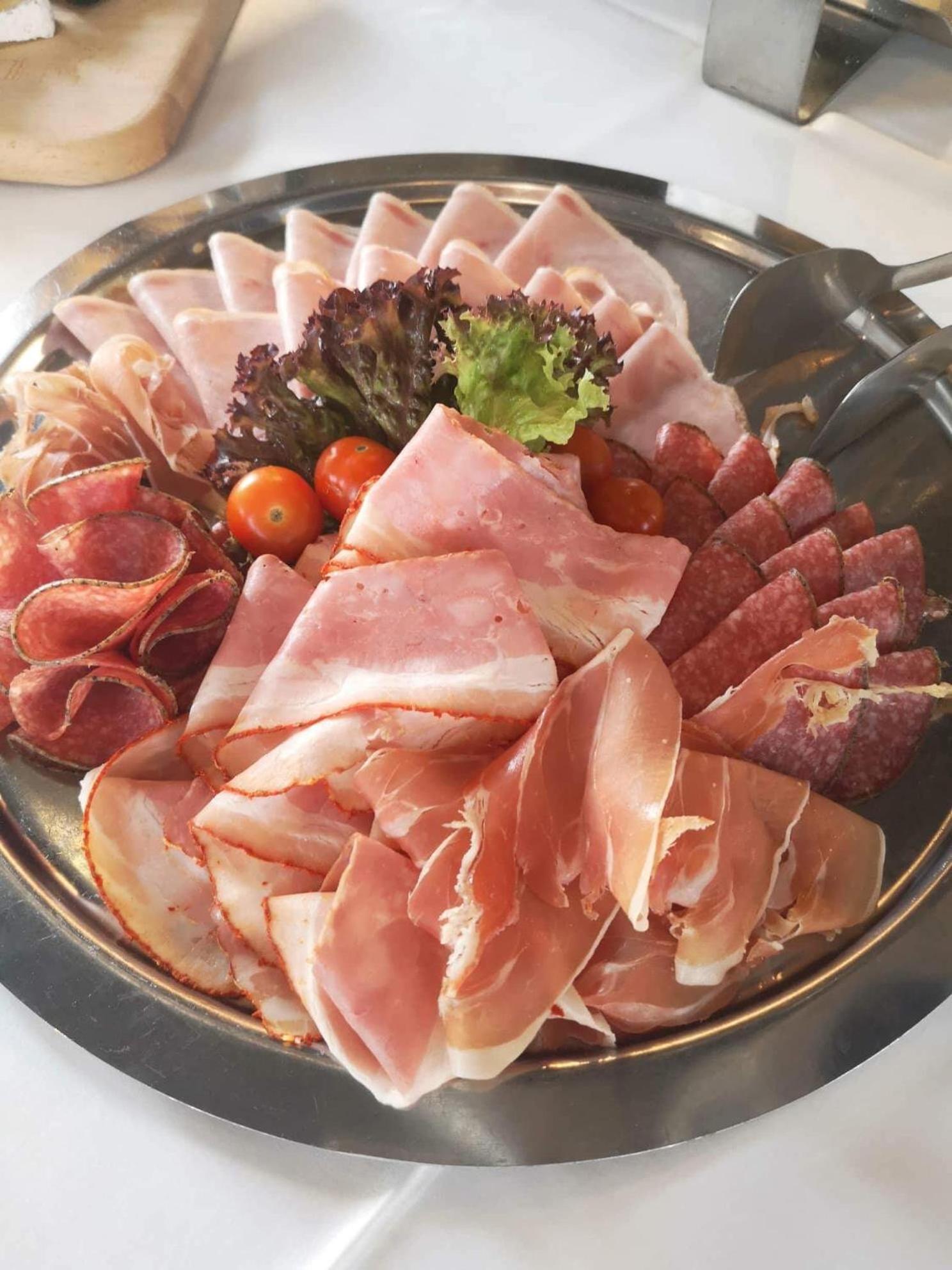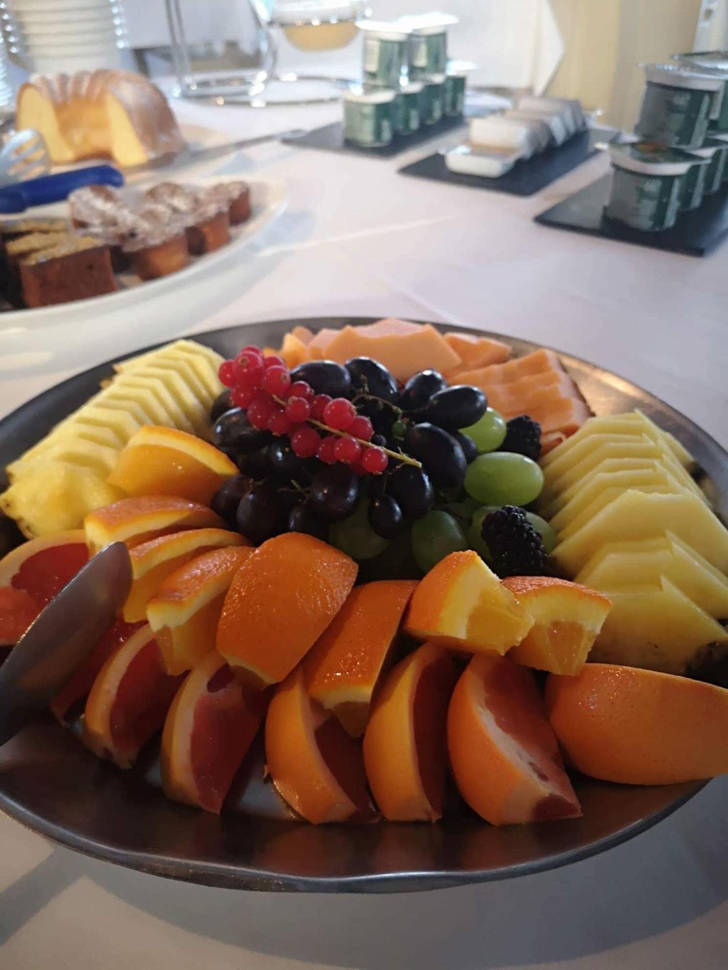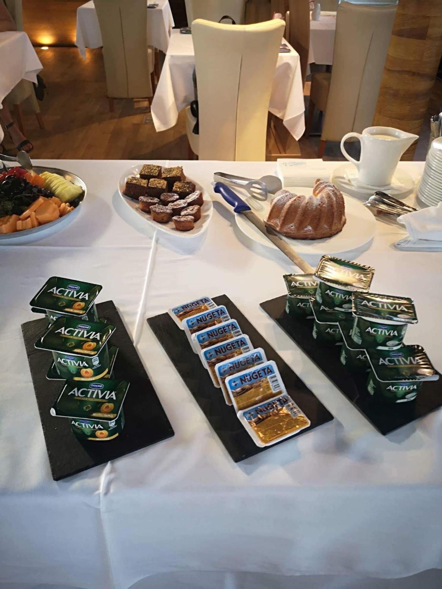 Dost slabá snídaně. Žádné sladké, pečivo jeden druh- dlouhá bageta, párky, vajíčka, sýr, trocha ovoce