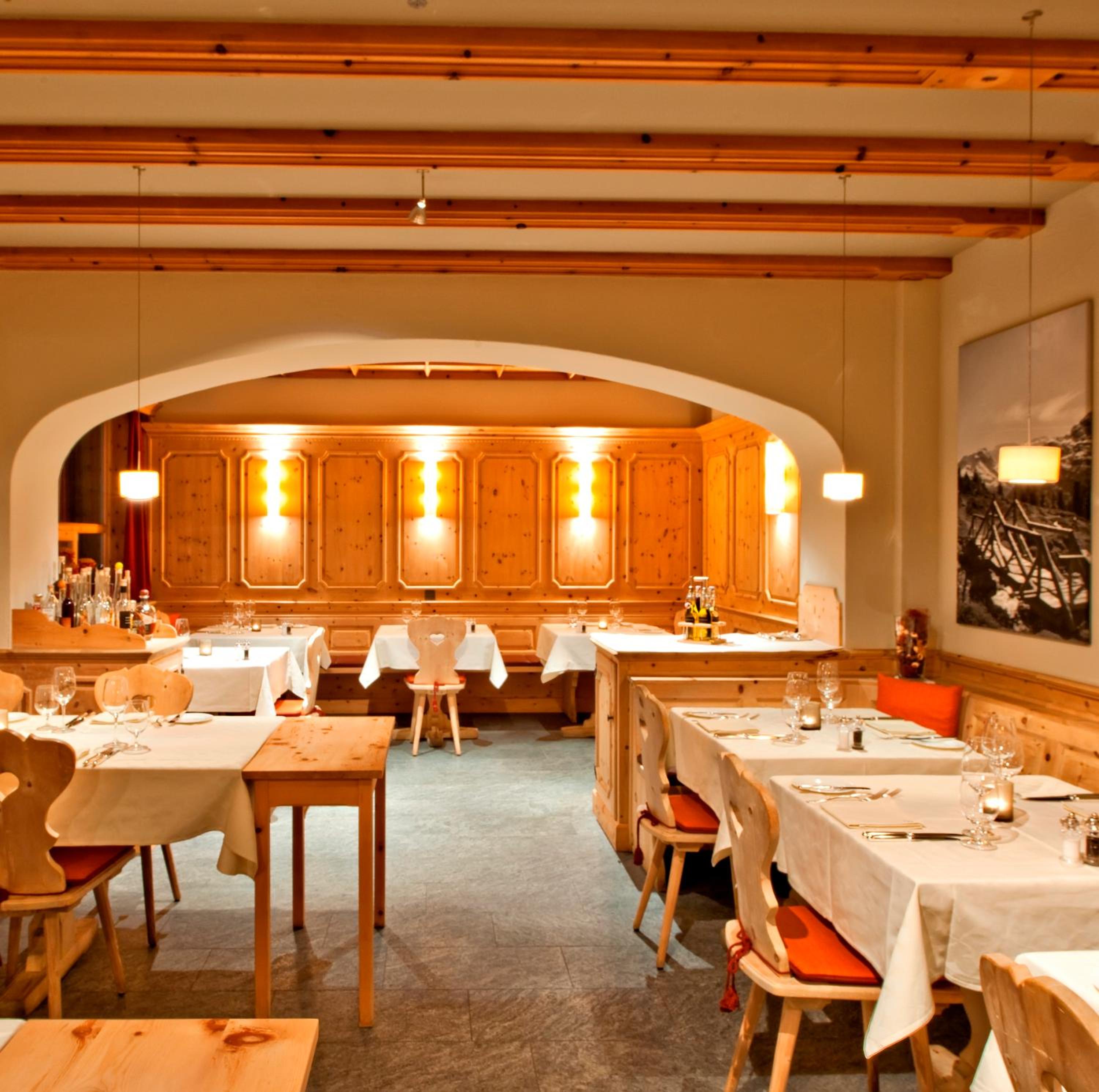 Alpine Elegance: Indulge in Swiss and international cuisine at La Padella restaurant and Jenatschstube.