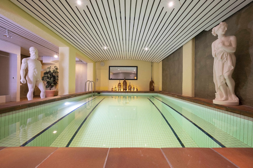 The room was not very clean. I dropped my book between the bed and the cabinet and my book was covered in dirt and fluff. We did not use the swimming pool - or should I say plunge pool. The online photo makes it seem like the pool is about 25m long but in fact it is more like 10m! The swimming pool is very dark and dingy and not at all inviting. It's a sham because we chose this hotel because it had a pool. On the plus side, the beds were extremely comfortable and the breakfast was great, a very good selection of muesli and breads. The hotel team were very helpful so I do feel mean giving this review but I do feel a bit tricked into thinking they had a nice pool.