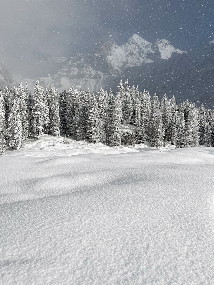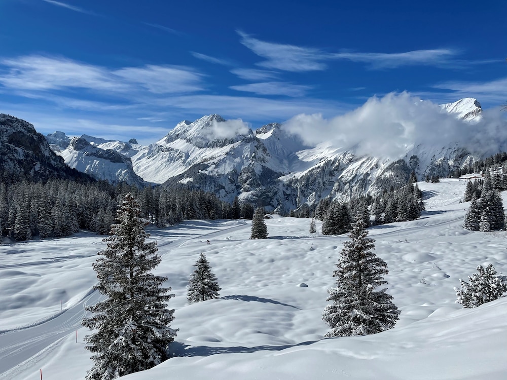 Very much a vintage hotel experience. I had an excellent mountain view, which I was able to enjoy from bed every morning. The cleaning crew were efficient and very good. The staff was very helpful with planning alternative hikes. I chose to walk the 800m from the train station, which for me was very doable. However, I am very fit and this may not be an option for everyone. The breakfast buffet was very good. I also had dinner at the hotel restaurant, Nico's, which was excellent. It was my best dining experience in Kandersteg and during my stay in Switzerland. The spa was small, but clean and very relaxing. I highly recommend staying here and would absolutely re-visit if I come back to Switzerland.