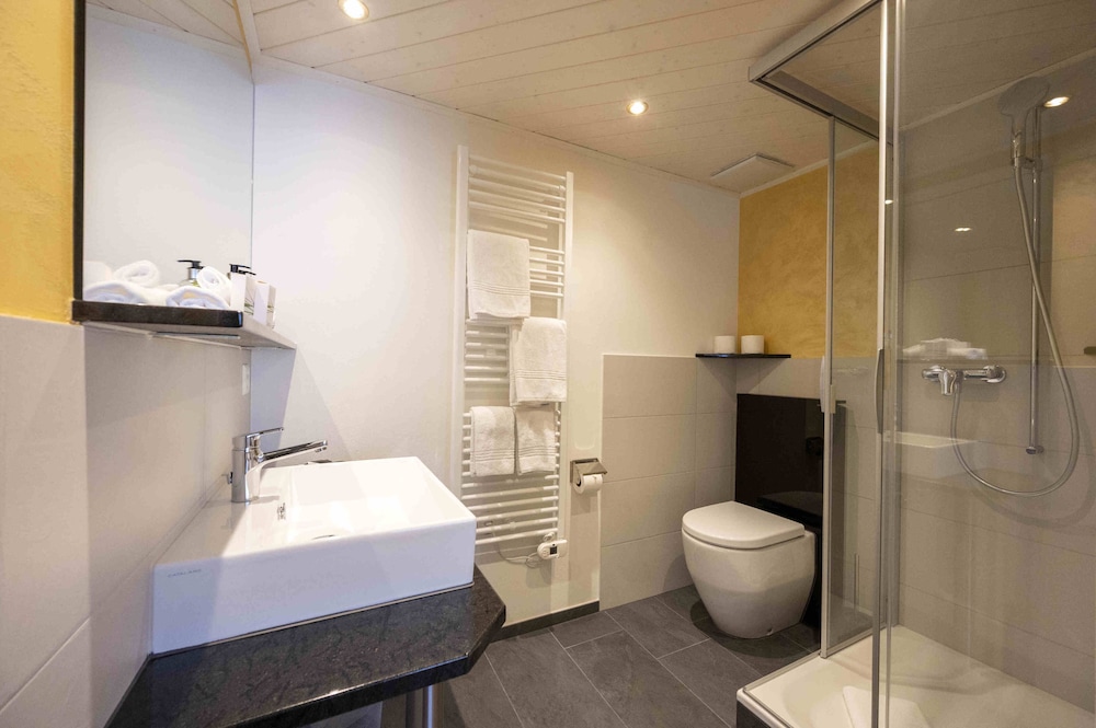 A excellent hotel which is friendly and well run. However it lost points due to some things that can easily put right. The one that would involve cost. Is lack of charger for electric cars. A suprise with Switzerland liable to lose so much due to global warming with nearly the entire railway electrified. a strange omission. Beer is expensive even allowing for Switzerland. For some reason whilst they will fill your flask with hot water you cannot have tea bags and milk for having tea in your room A coffee machine and coffee is provided. Also breakfast has nothing hot. Bacon fried eggs etch. You can also not have a bread roll with cheese and ham as a take away. I'm sure this could be organised as there must by rolls tat are just thrown out. Not even allowed to buy one. Good point rooms are clean with a an excellent evening meal. Lounge is very nice.