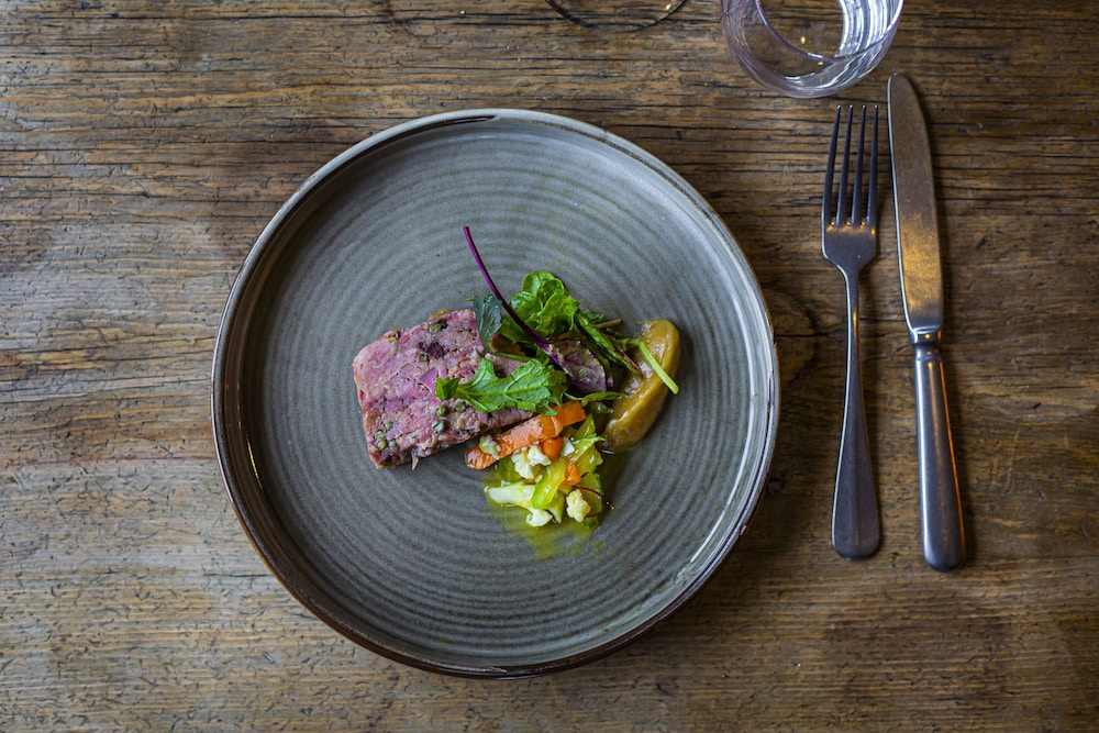 Good amount of parking on site. Over the road from the talbot yard and a short walk into the market square. Good for foodies when the Saturday food market is on. We had dinner in the onsite restaurant on the first night of our stay (steak), my partner asked for medium rare but some of it was underdone. He should have raised it at the time but I mentioned it at the end of the meal and and we were highly satisfied with how they addressed it and with utmost professionalism. I asked for mine to be cooked medium and it was lovely and the sticky toffee pudding was lush! (Note that the onion rings are more like onion petals but they were very nice). The bar is a great space for a relaxing drink and there's some nice grounds round the back of the hotel which you can walk round. The room was spacious and clean with a lovely ensuite bathroom, although some of the furniture was a bit tired (chipped paint and one of the bed side lamps blew, which i reported and it was taken away). Despite some of the issues (which were dealt with), I would certainly stay again when back in Malton.