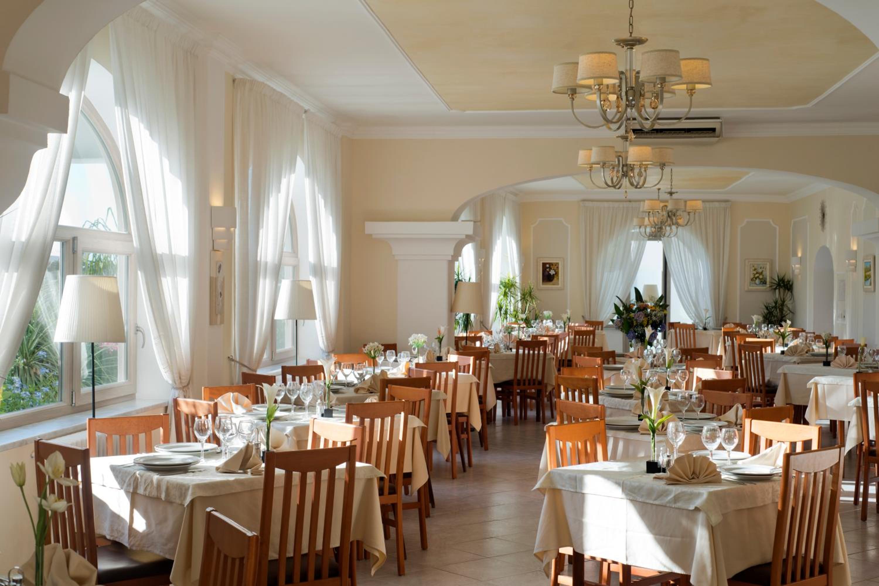 Gourmet Dining and Wellness: Indulge in typical Mediterranean cuisine at the on-site restaurant after a day of pampering at the spa and wellness centre, which features a Turkish bath, sauna, and massages.