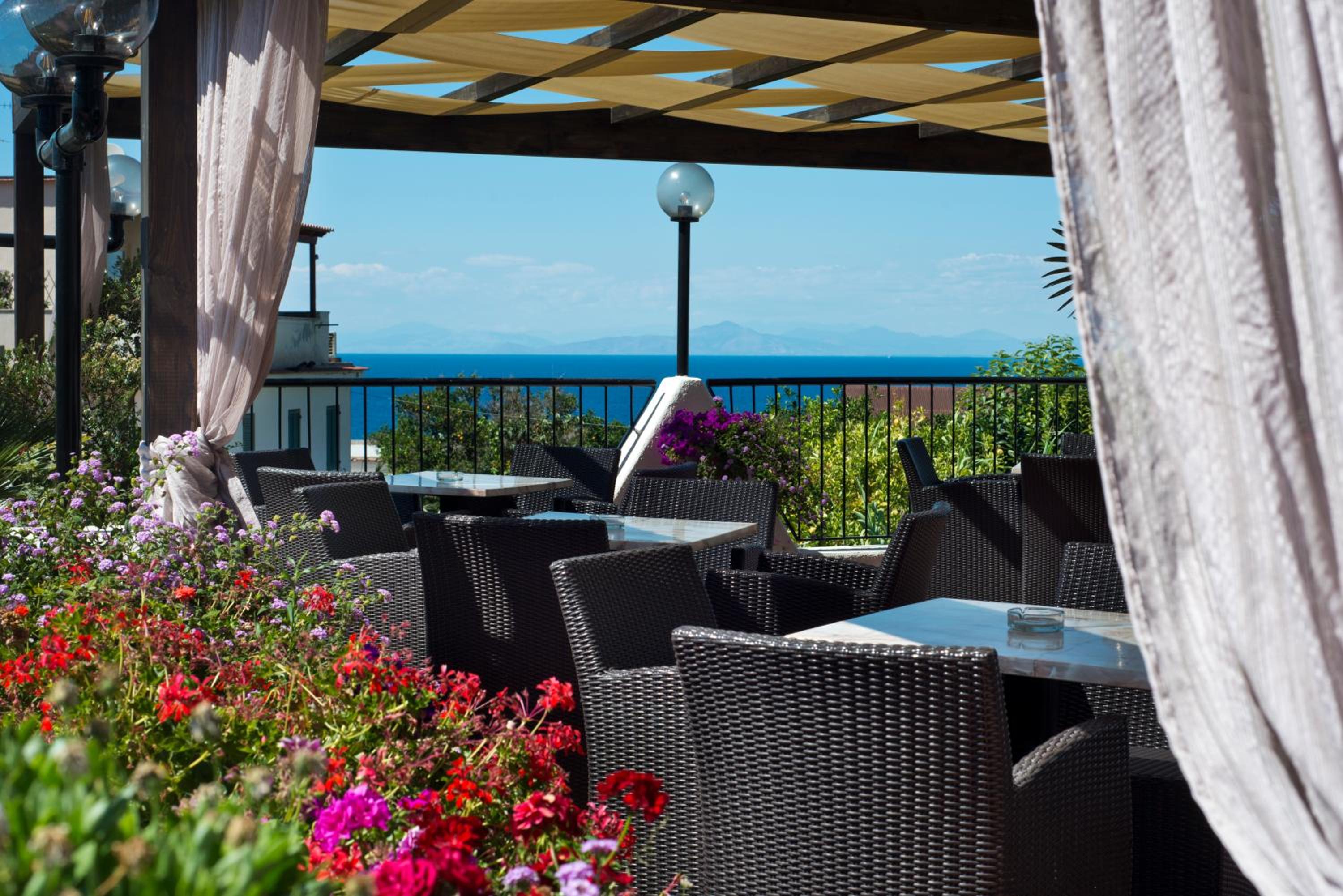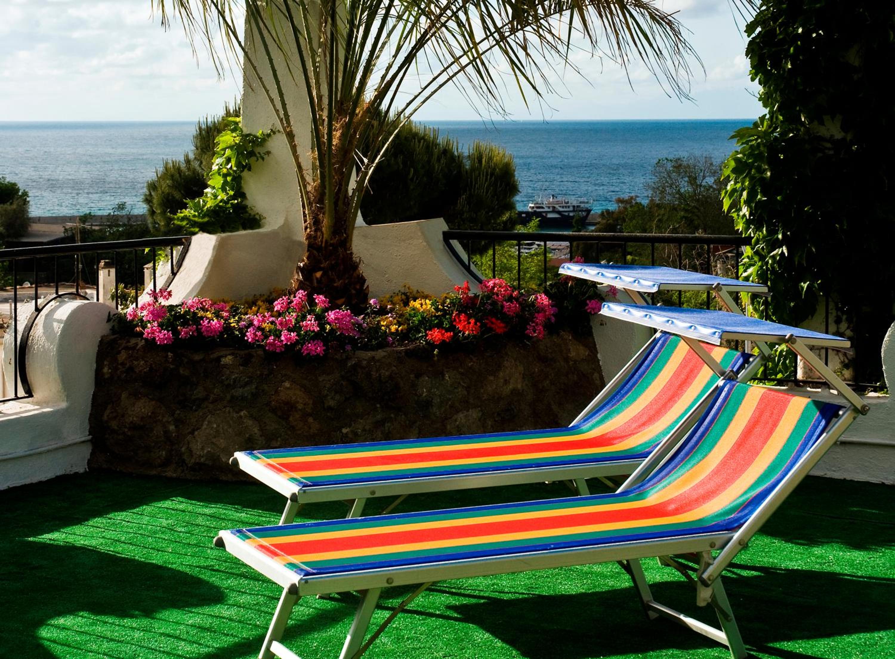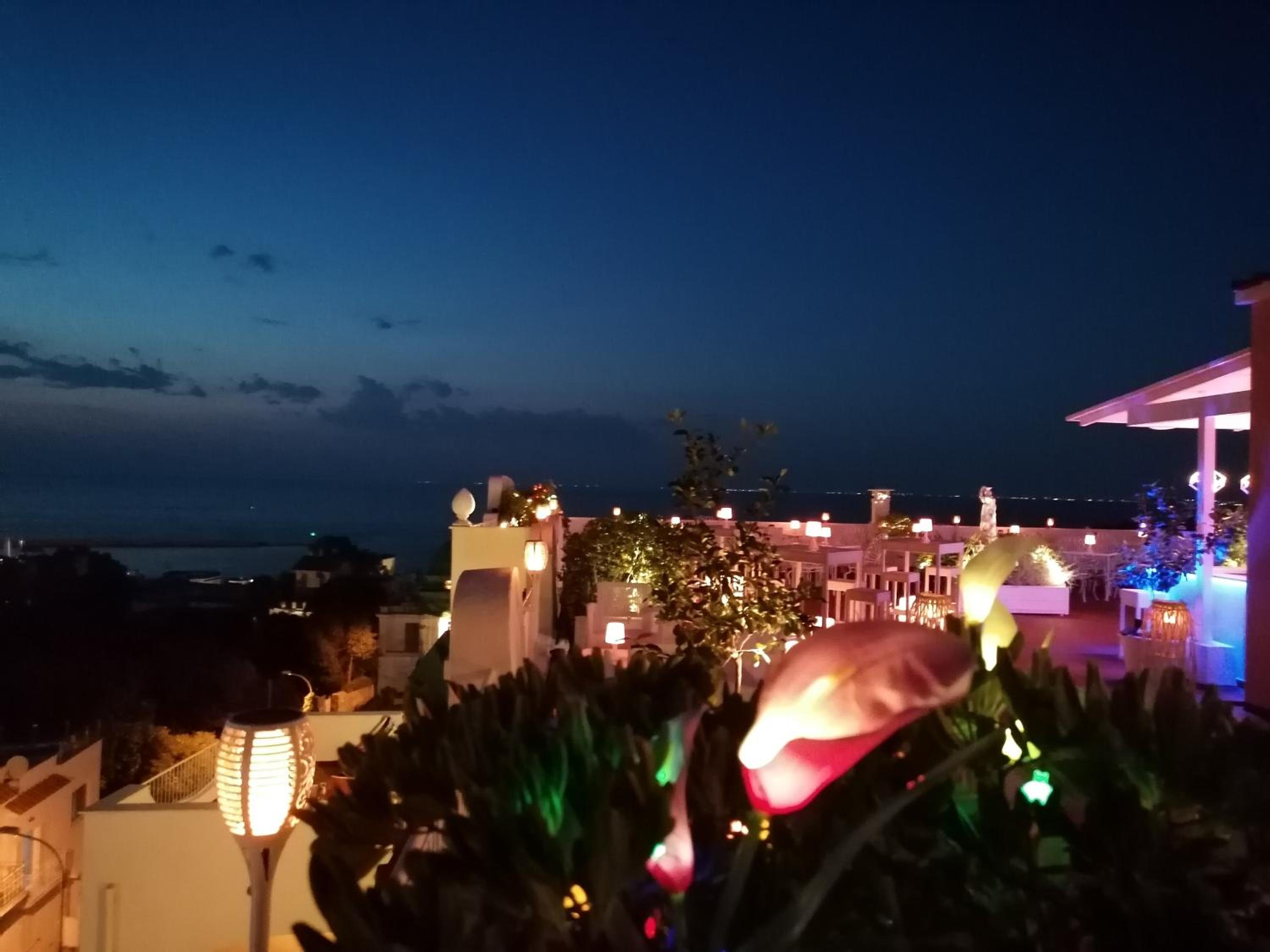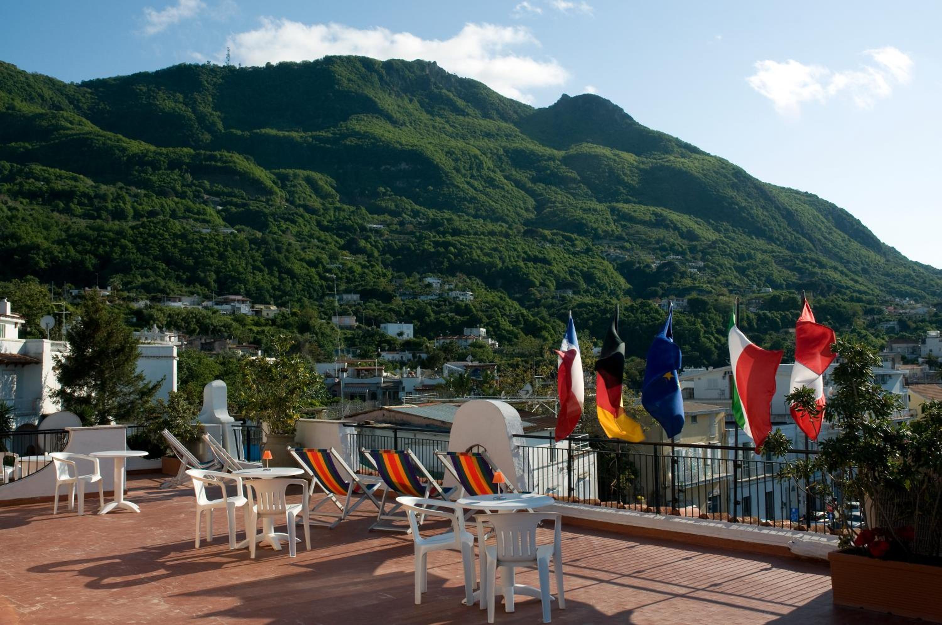 hotel, 10 min by walk from the ferry port, with the swiming pool and colourful garden. Regular singer's performance on the big roof terrace. Pleasant receptionist who was ready to share any information about the Ischia, bus tickets, thermals etc.