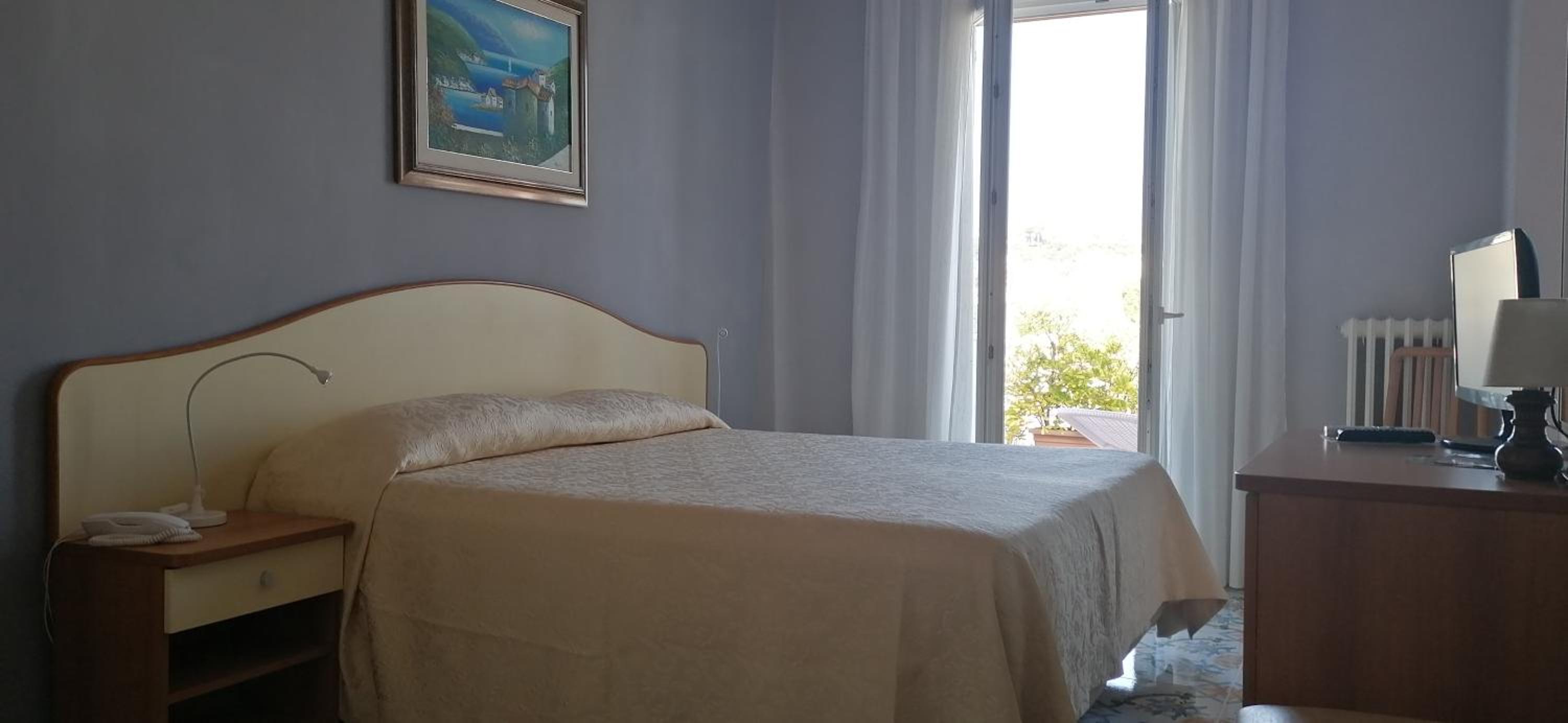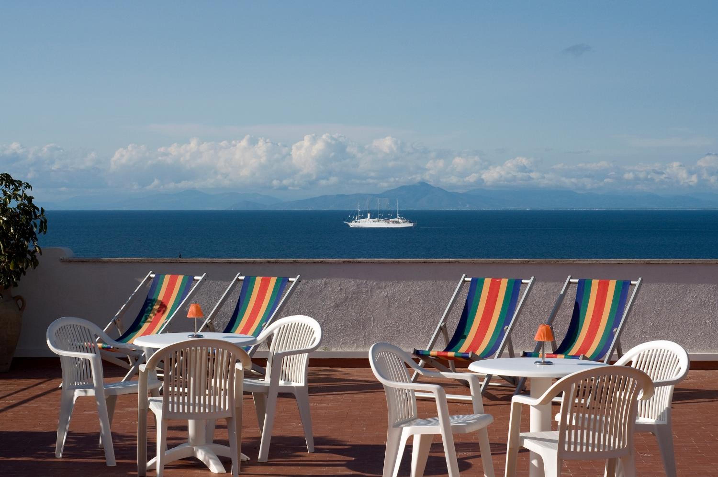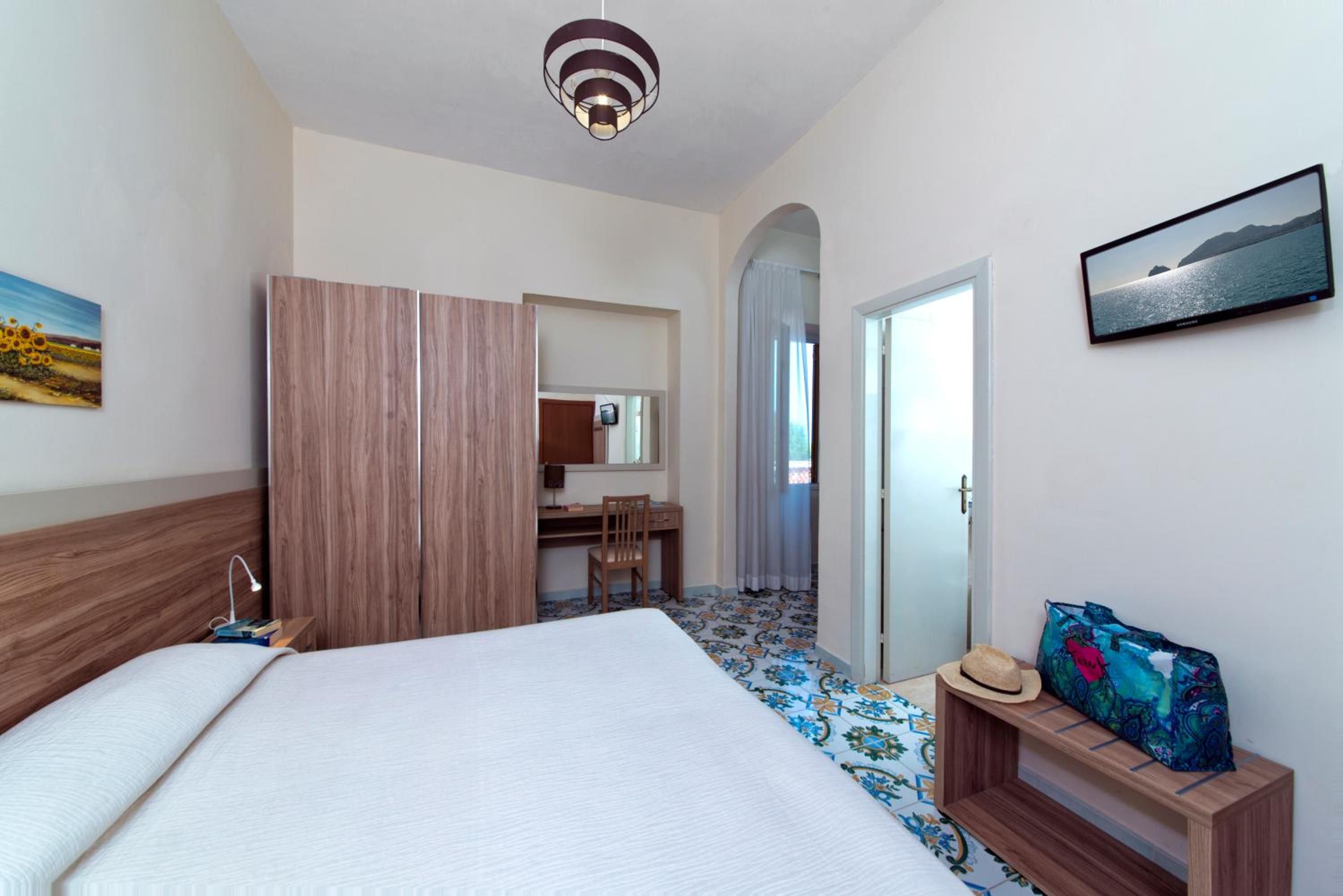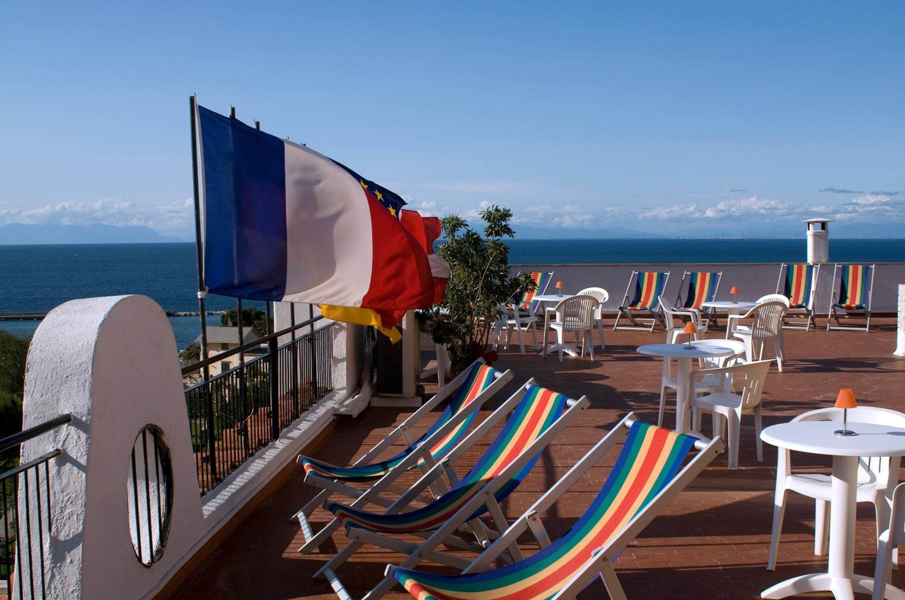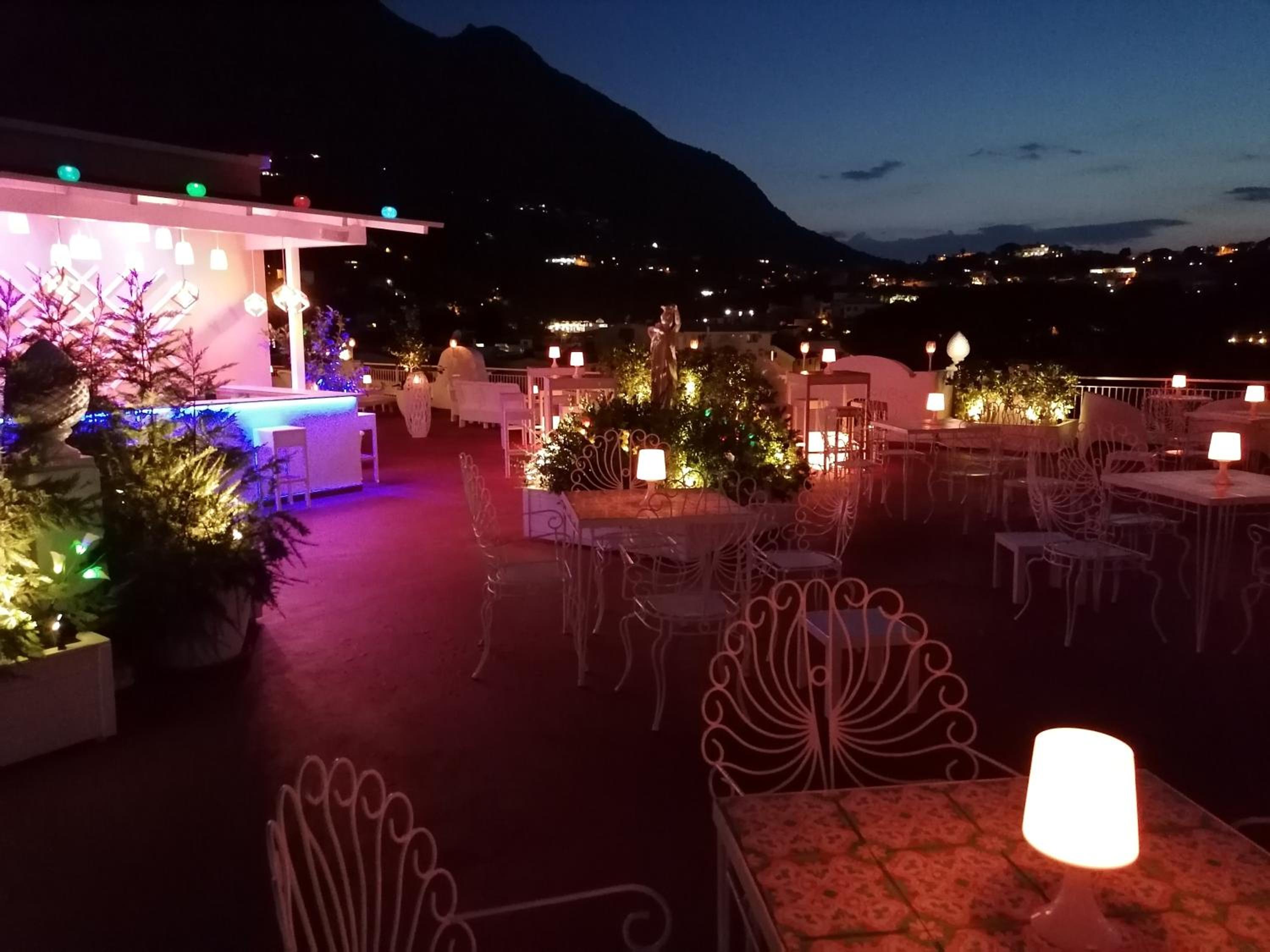 hotel, 10 min by walk from the ferry port, with the swiming pool and colourful garden. Regular singer's performance on the big roof terrace. Pleasant receptionist who was ready to share any information about the Ischia, bus tickets, thermals etc.