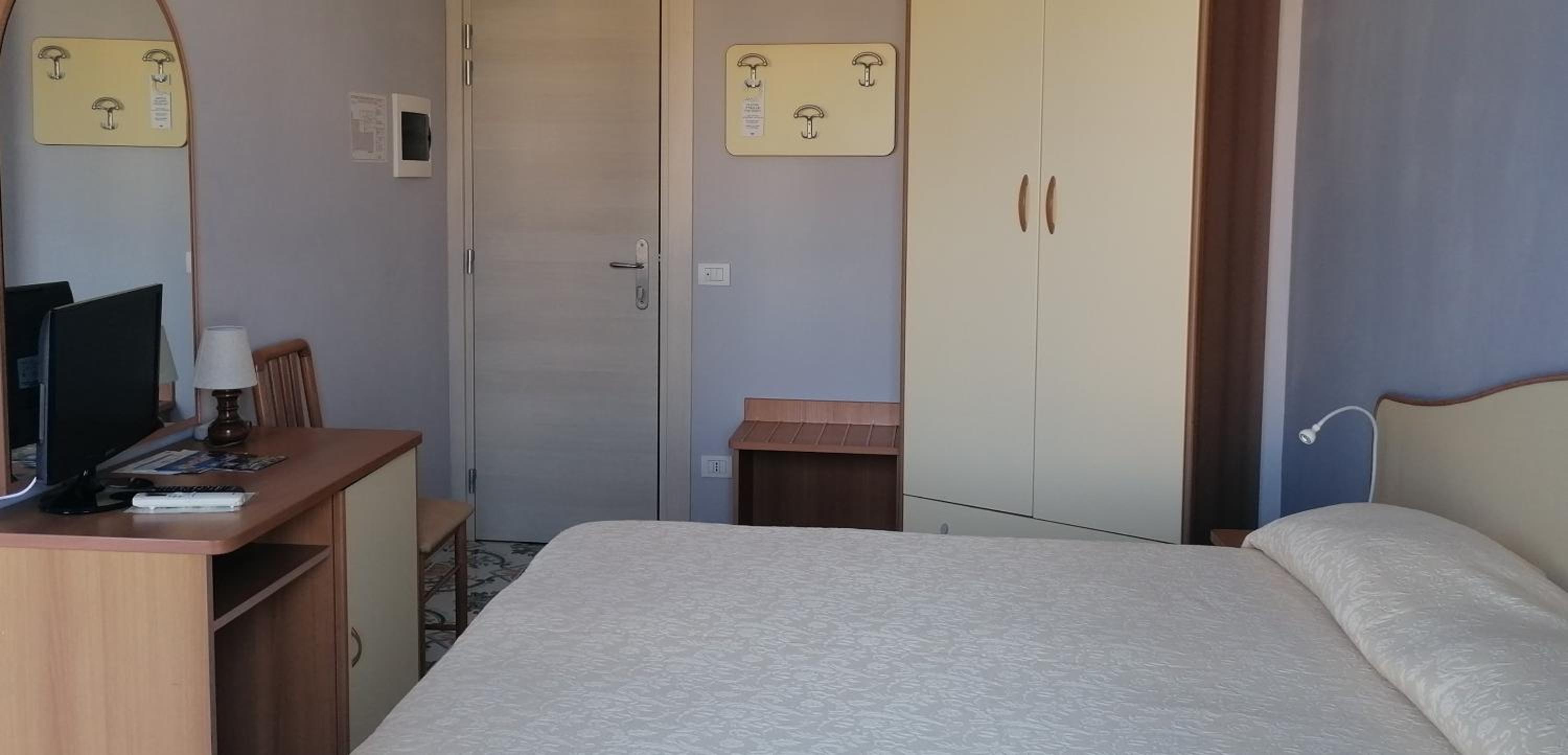 buona colazione sufficientemente varia, la camera non molto spaziosa, ma pulita e luminosa. stessa cosa per il bagno anche se era sufficiente una doccia un po' più ampia. la posizione non è centralissima, ma in 10 minuti si raggiunge il lungomare.
