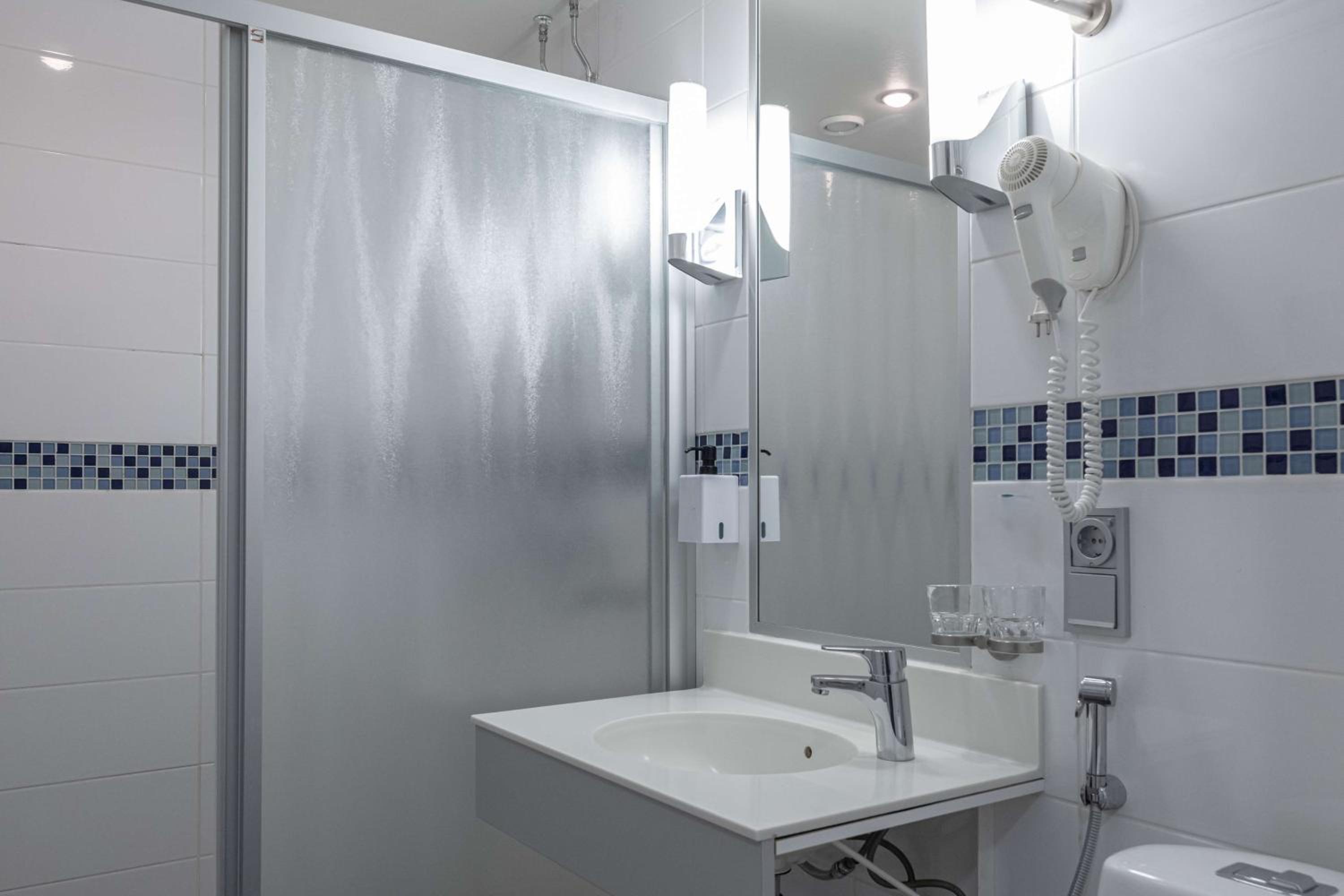 Tilava kylpyhuone. Siisti huone.