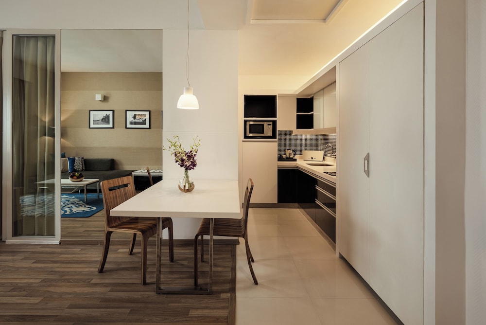 What is has going for it is location—in a quiet neighborhood in Kormangala; room size—all suite with a fully equipped kitchen; and close proximity to two neighborhood parks.