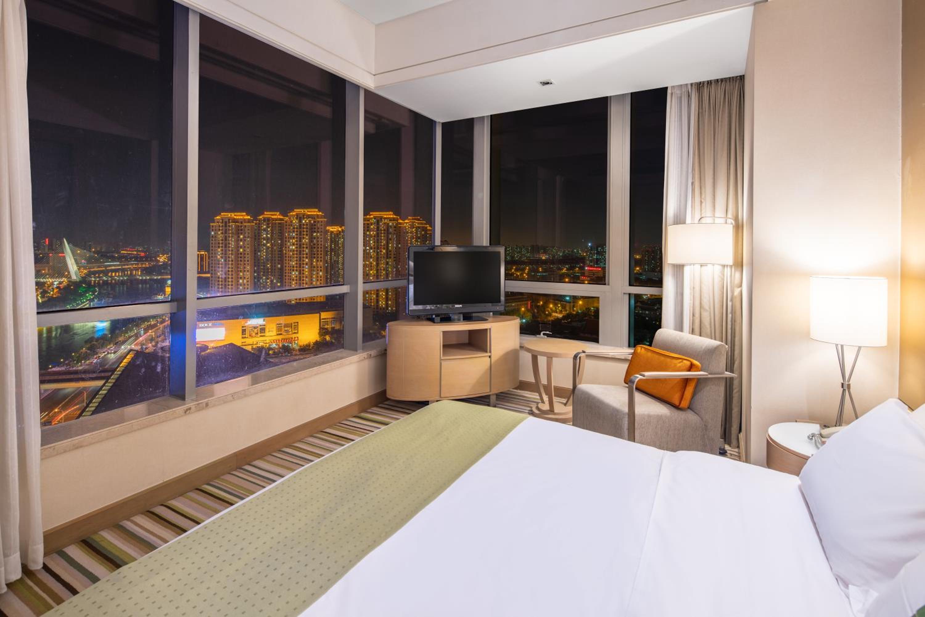 Holiday Inn Tianjin Riverside offers spacious and well-appointed guestrooms with modern facilities such as an indoor pool, spa center, and gym. Enjoy the comfort of soft shades and carpeted flooring in air-conditioned rooms equipped with cable/satellite TV and minibar. Some rooms even provide stunning views of Tianjin Eye through full-length windows.