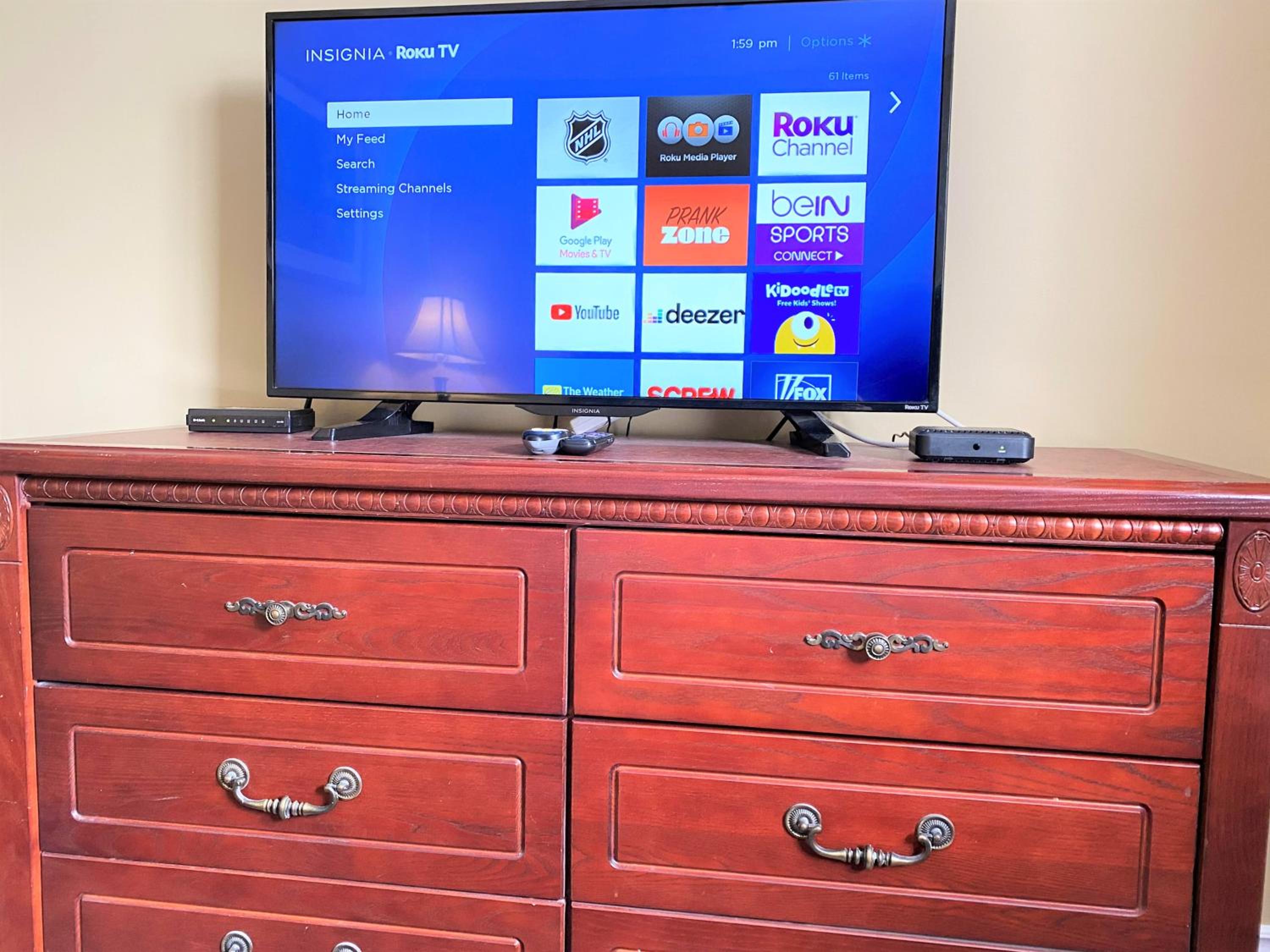 There was an electrical power bar screwed to the wall with screws, going directly through the power bar and one of the outlet plugs. That caused us concern so we didn’t use any of the plug-ins.