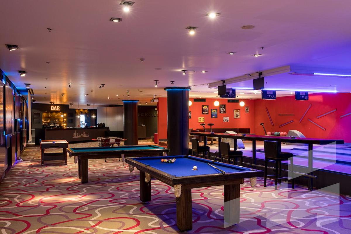 Guests can enjoy a wide range of activities including soccer, tennis, bowling, and access to multiple swimming pools. The hotel also features a gym and a games room for entertainment.