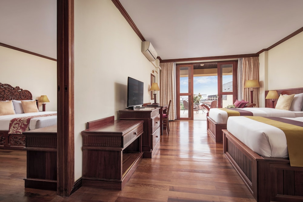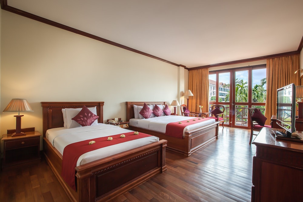 We stayed here for 3 nights whilst visiting Angkor Wat. Our room was large for three adults sharing. We had a street view which was extremely quiet, compared to most destinations. Breakfast was really good choice of food for cultures. Lunch was also good by the pool. Easy to get a Tut Tut from to visit th temples. We had the same driver for the day to do Sunrise and sunset. He took as to buy our tickets the afternoon we arrive to save queuing the next morning then dropped us down Pub Street.