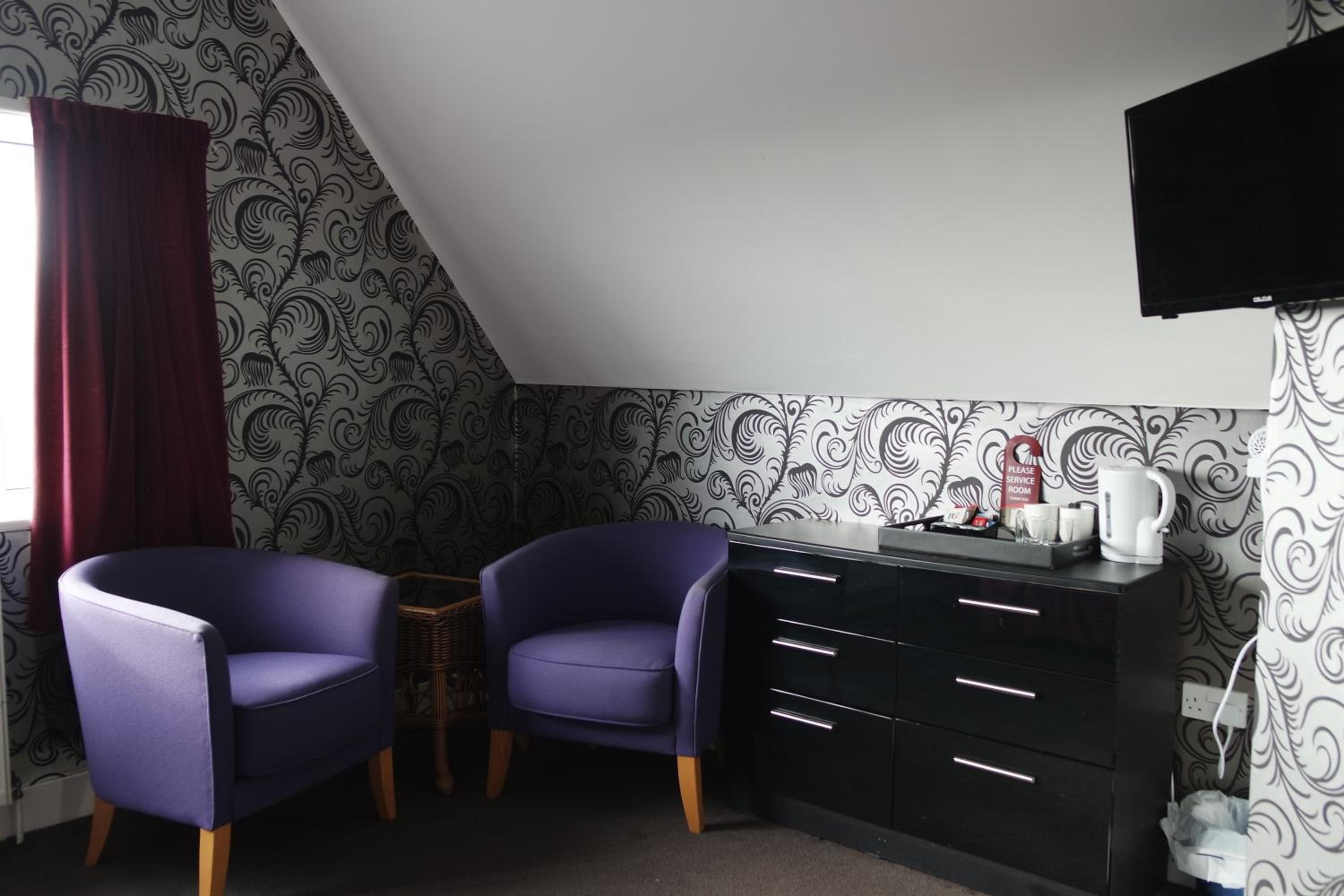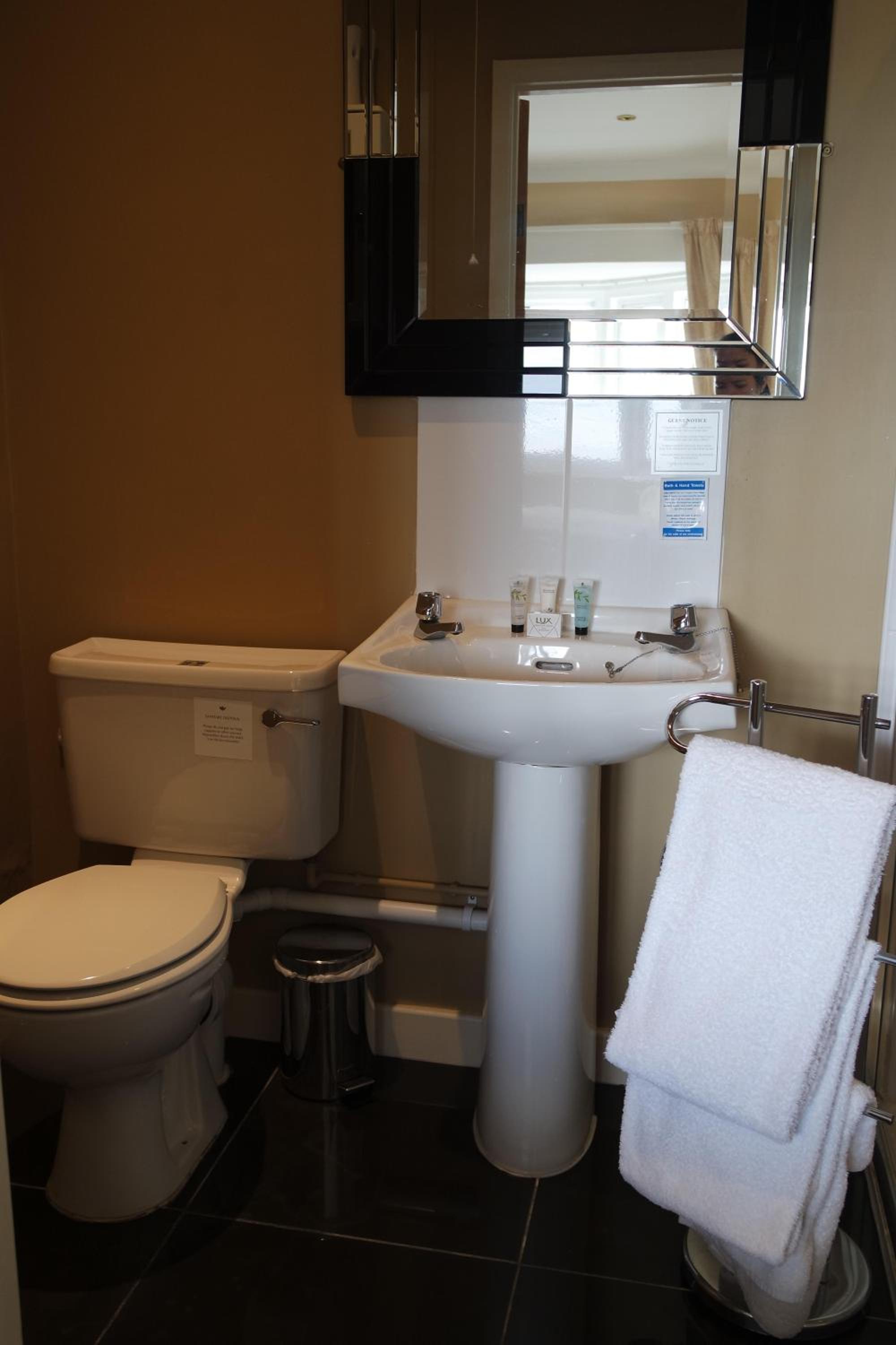 Interesting property. Upon arrival we were greeted with a charge for towels which was somewhat unexpected and a system whereby breakfast forms needed to be submitted the night before. Off road parking both on the drive of the property and on the adjacent street. The carpets on the stairs to our room were rather worn but the room itself was extremely spacious - very comfortable indeed. The shower although rather aged as effulgence and had good temperature. No amenities in terms of an on site bar and no evening meals, but the owner was very friendly and the hotel was great value