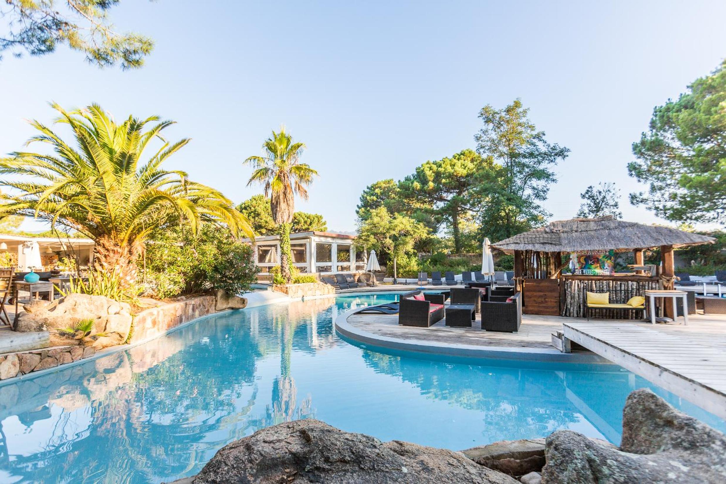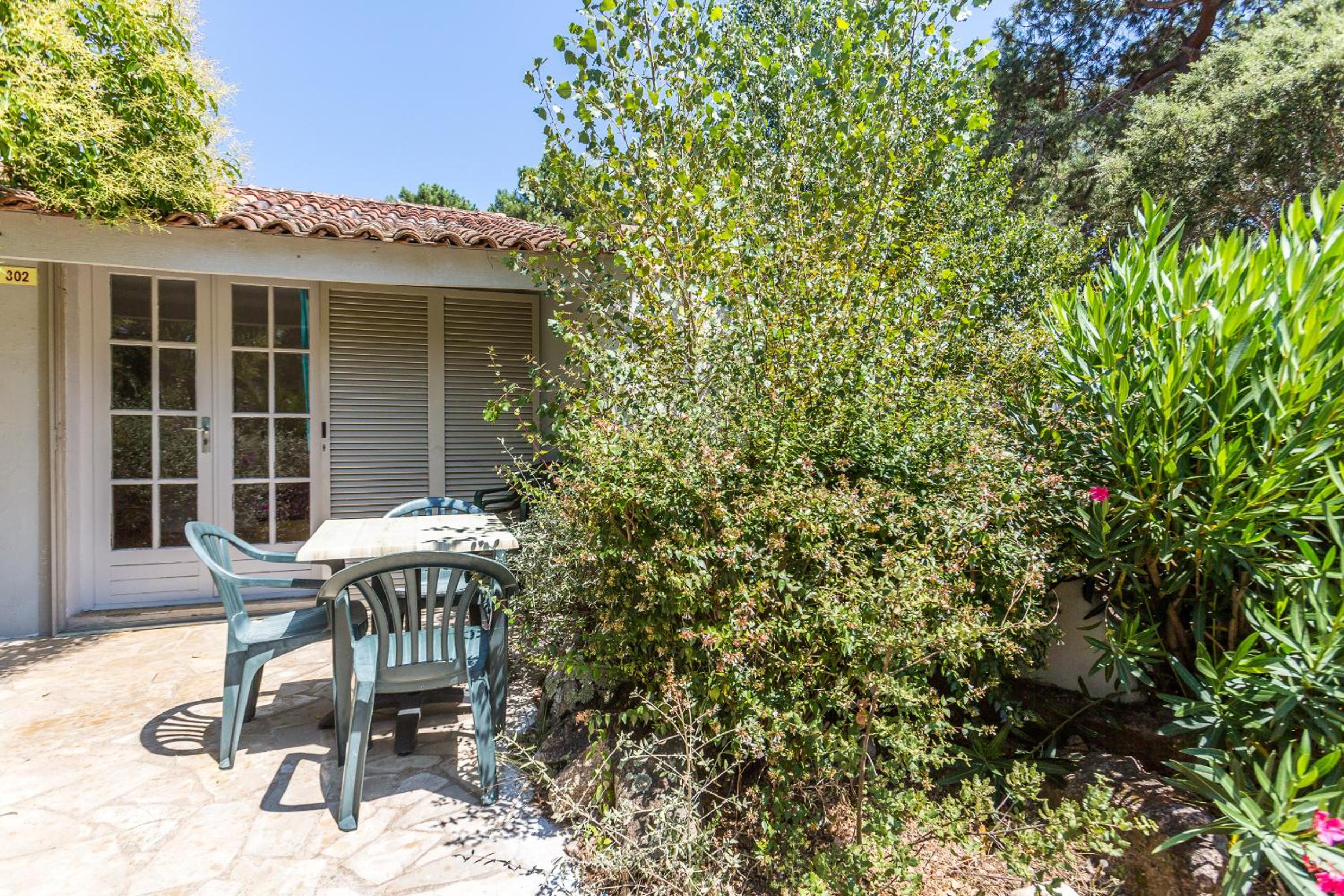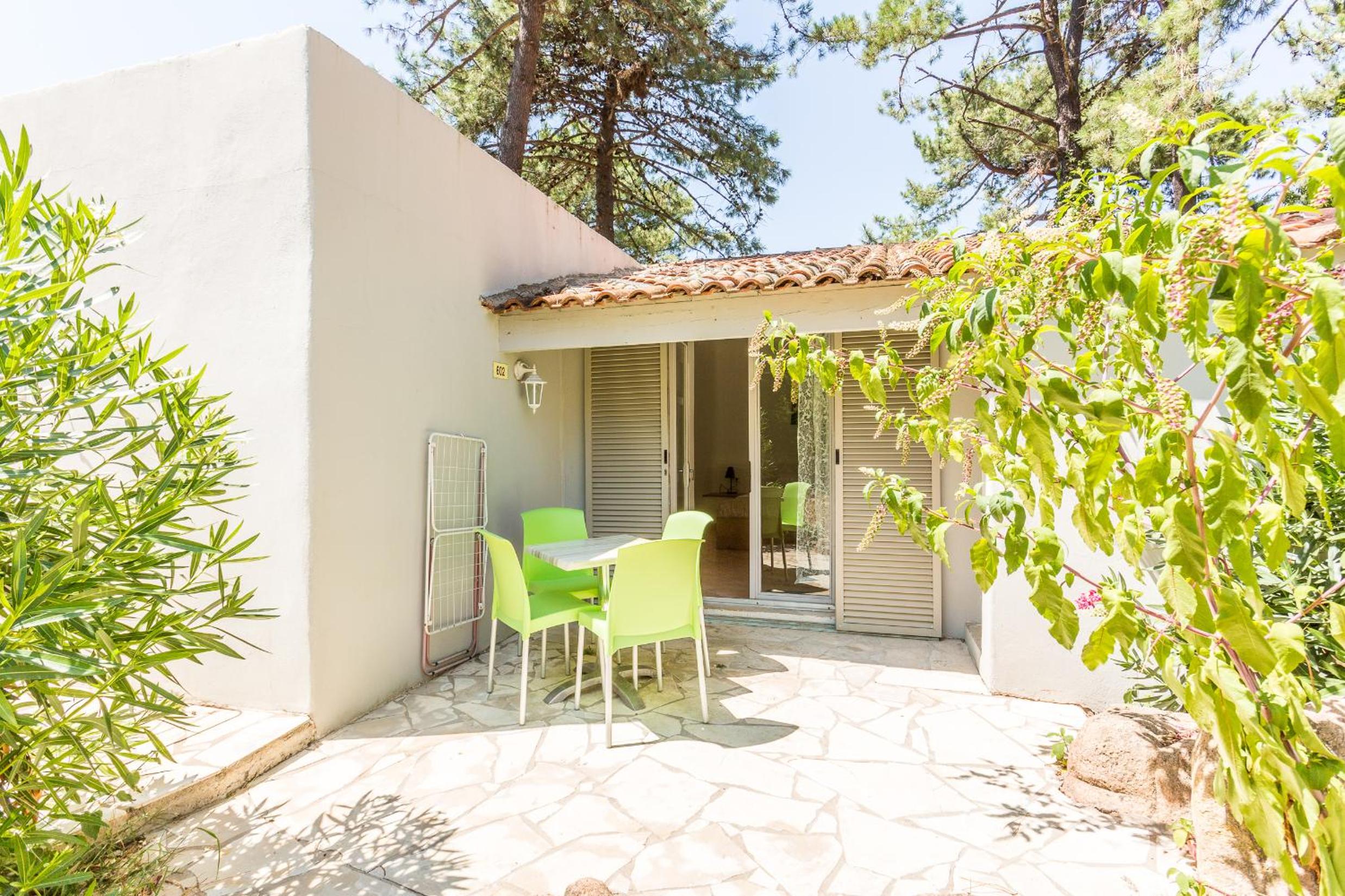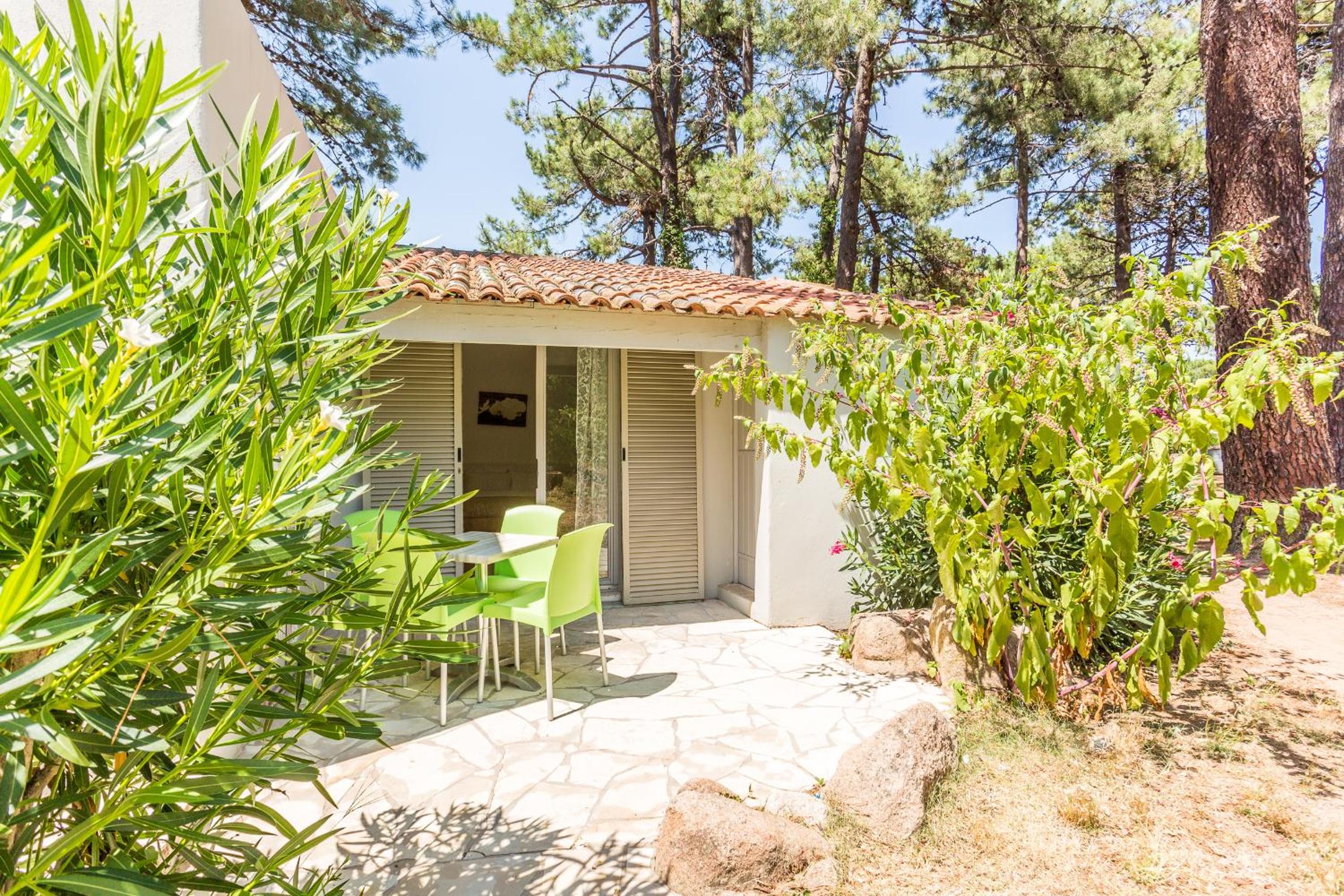 Les équipements disponibles comme les canapés, les transats, les jeux extérieurs, rien à redire, c'est accueillant et le petit déjeuner soit en intérieur soir au bord de la piscine sur cette belle terrasse en bois fait tout son charme. Pour le prix, à quelques minutes de Porto-Vecchio, nous sommes très très satisfaits. Quant aux logements, de petits appartements individuels plein pieds en îlots de petites maisons avec leurs petite terrasses privatives vraiment mignon, et les chambres sont très agréables, jolies avec leur style enduit à la chaux.