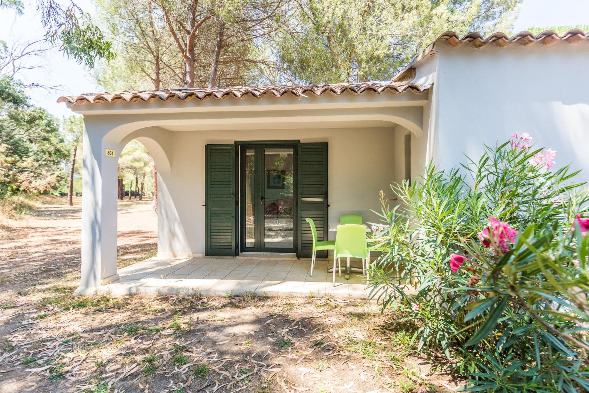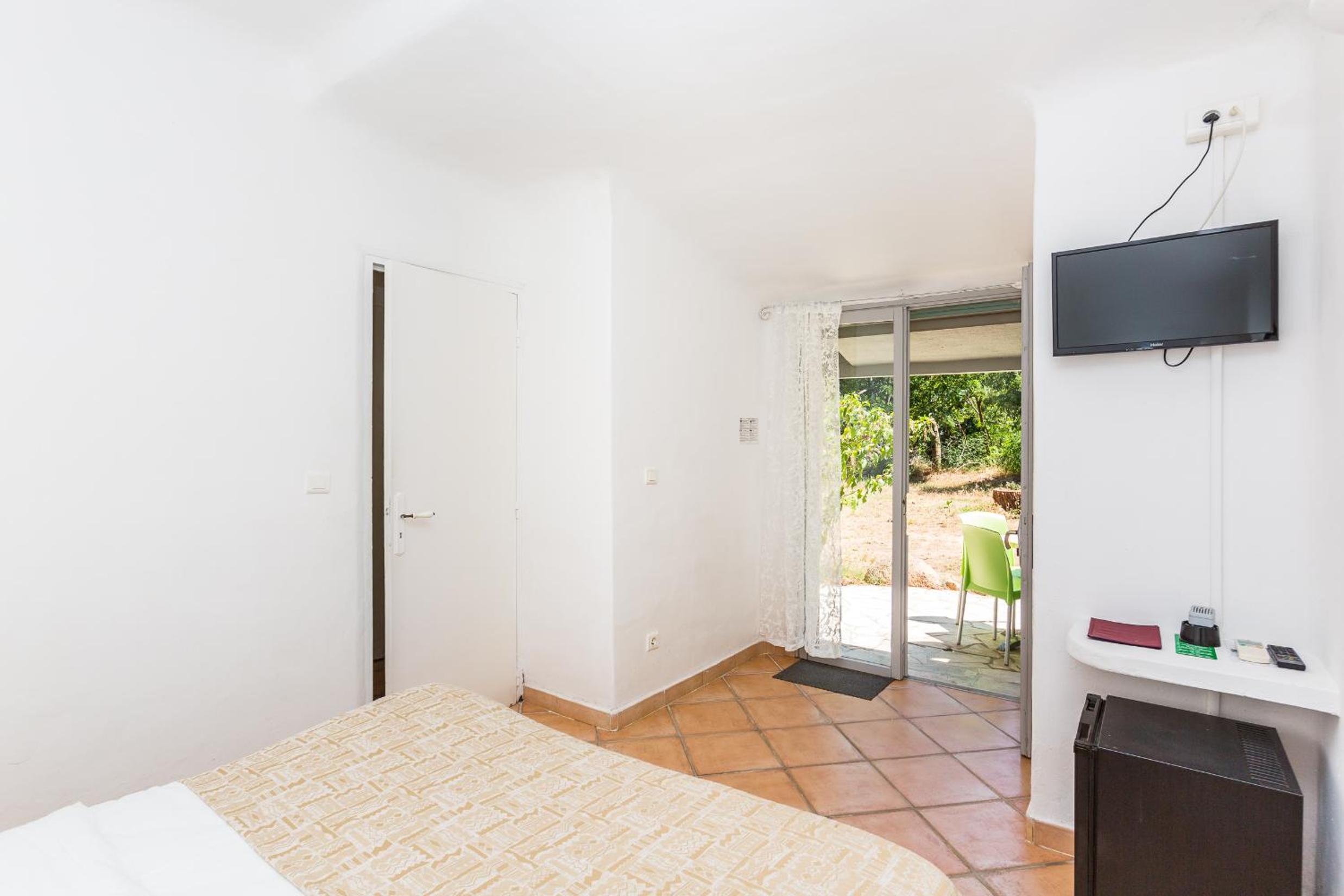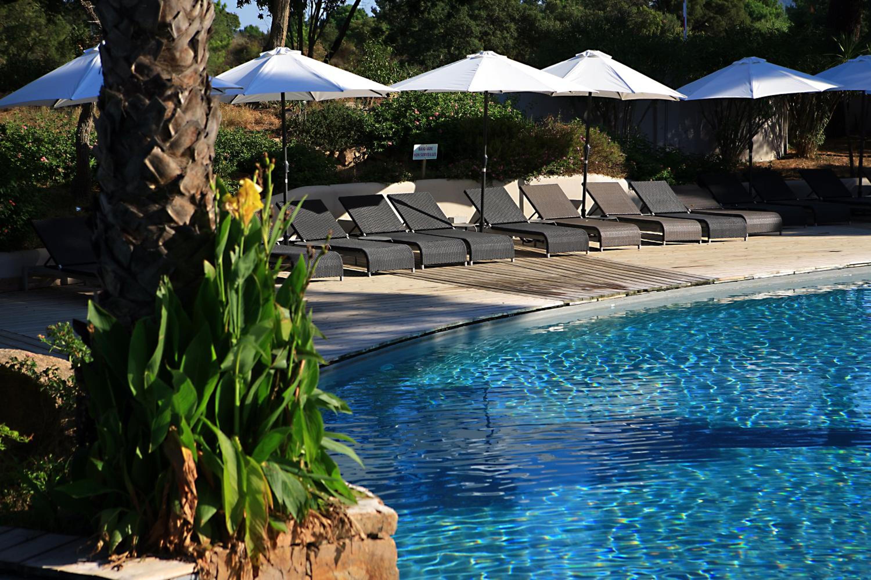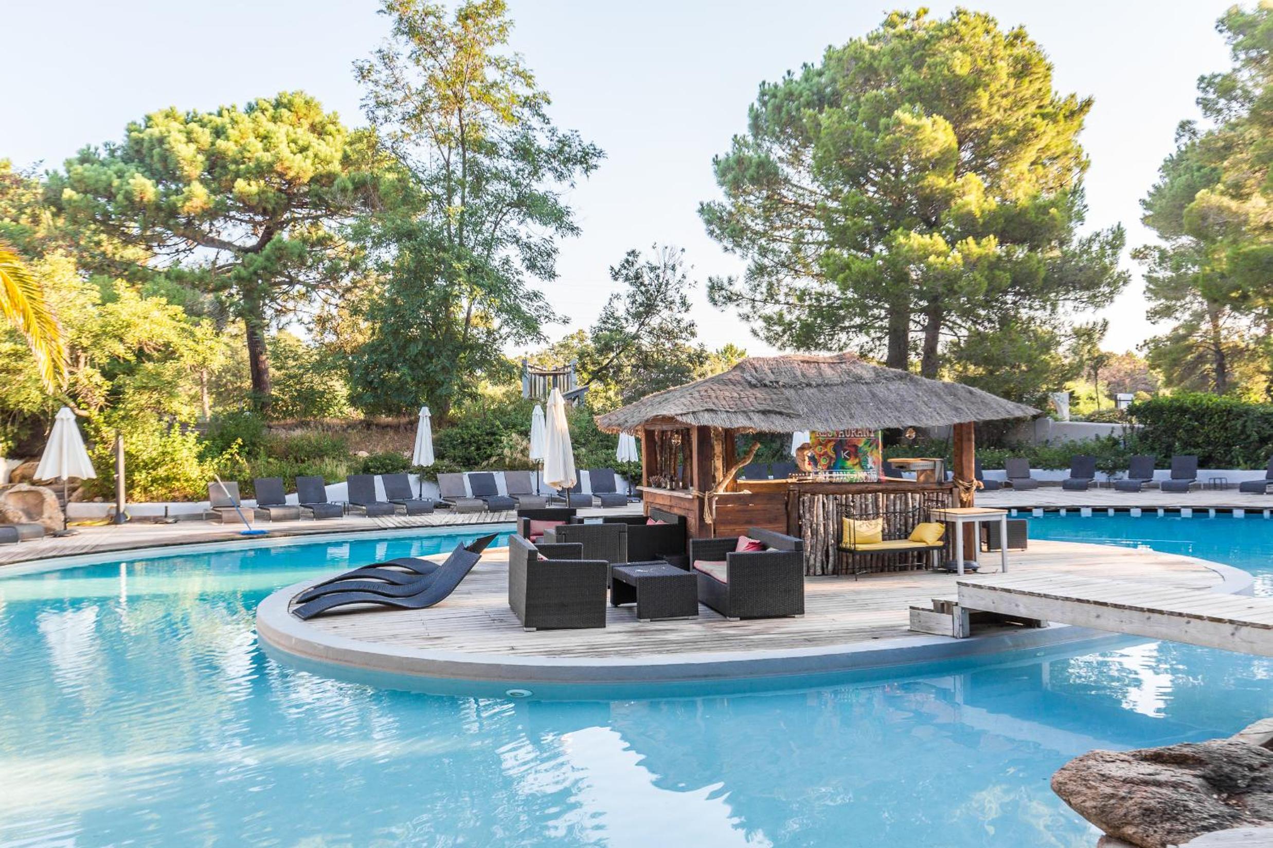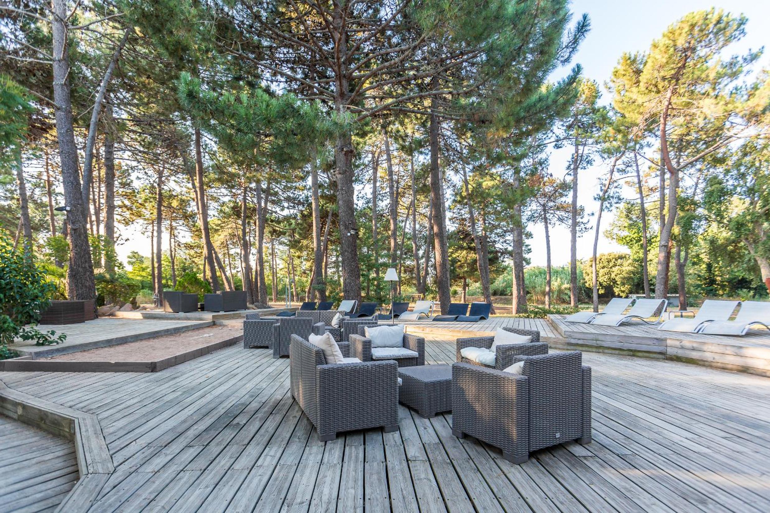 Les équipements disponibles comme les canapés, les transats, les jeux extérieurs, rien à redire, c'est accueillant et le petit déjeuner soit en intérieur soir au bord de la piscine sur cette belle terrasse en bois fait tout son charme. Pour le prix, à quelques minutes de Porto-Vecchio, nous sommes très très satisfaits. Quant aux logements, de petits appartements individuels plein pieds en îlots de petites maisons avec leurs petite terrasses privatives vraiment mignon, et les chambres sont très agréables, jolies avec leur style enduit à la chaux.