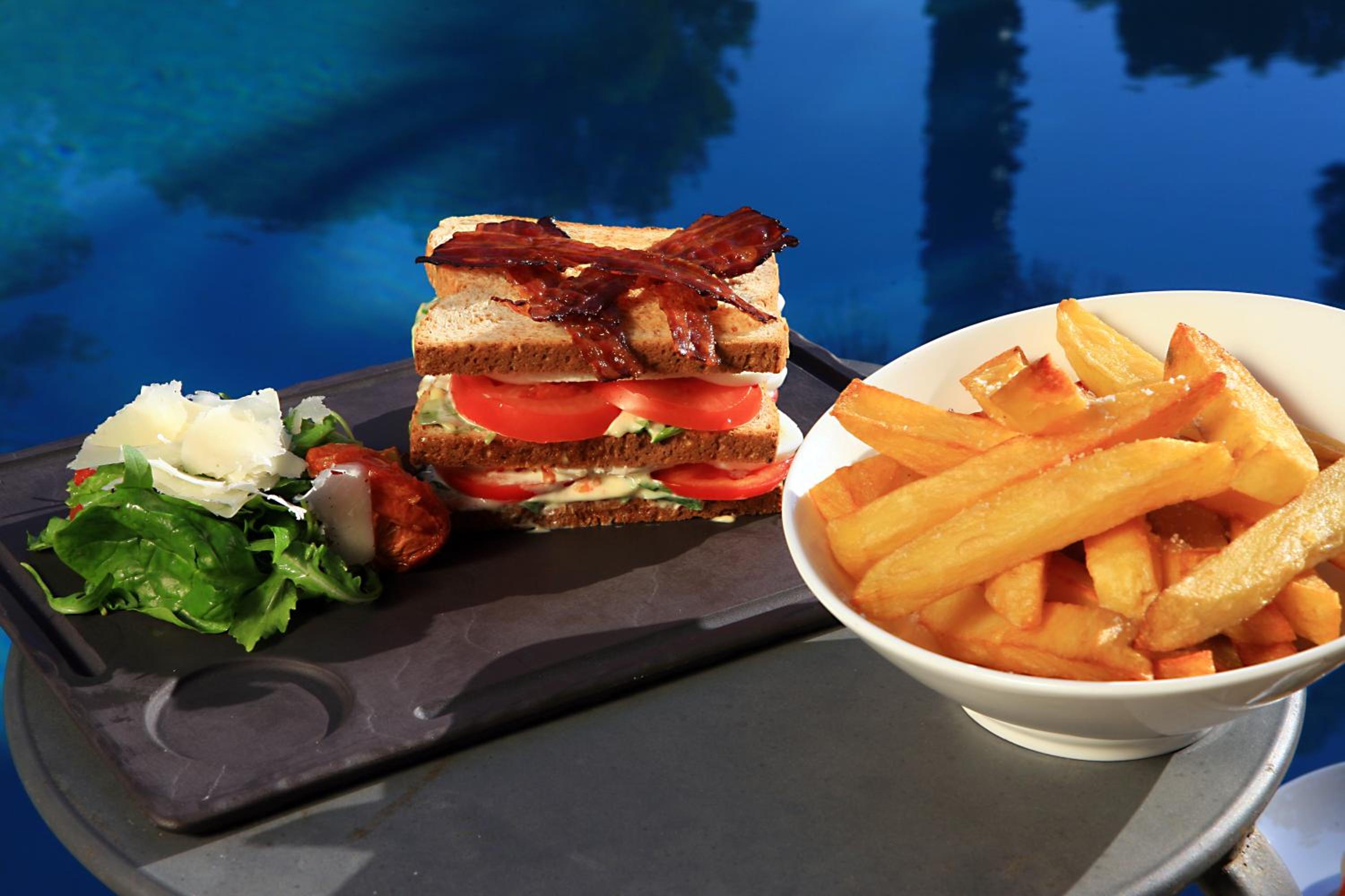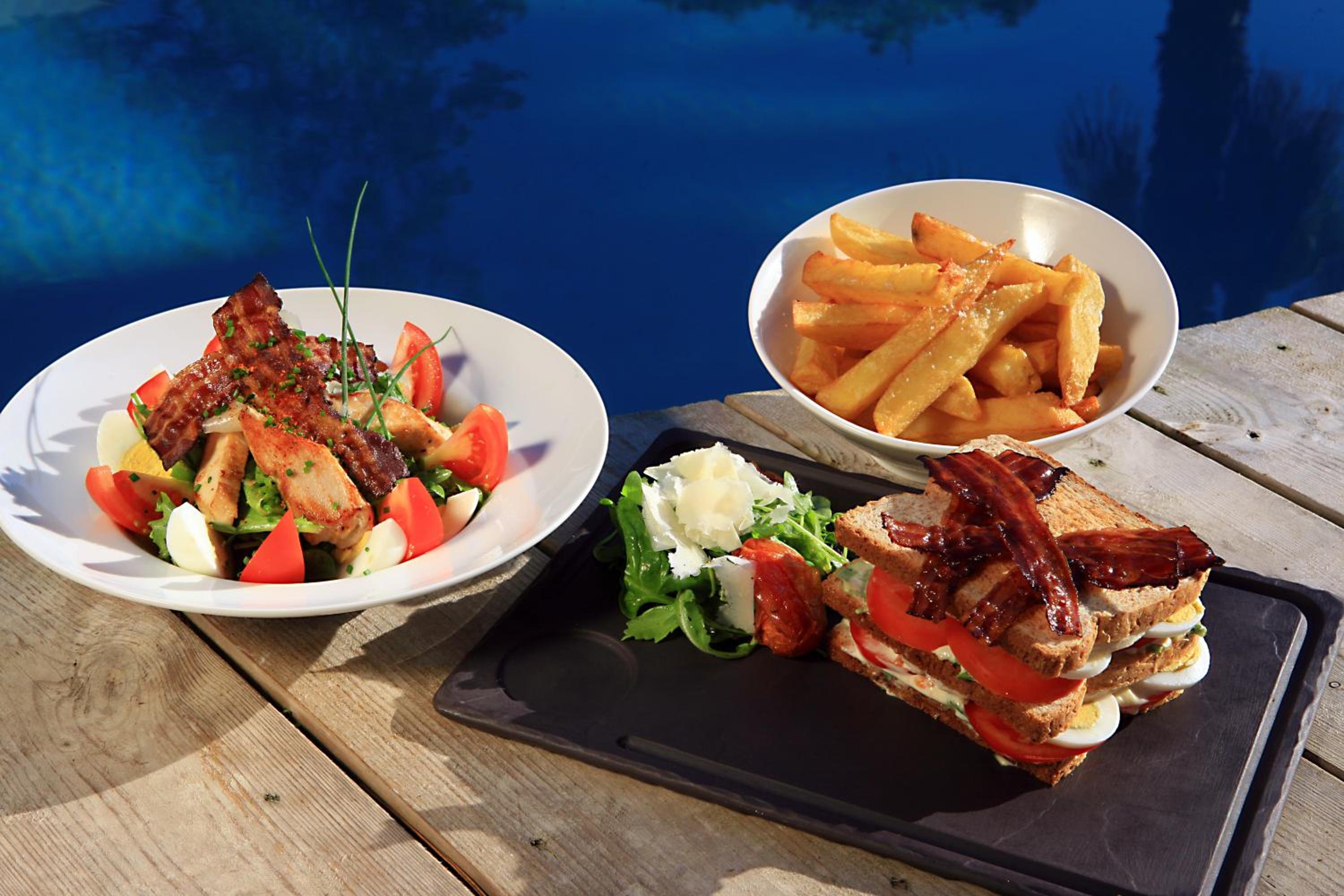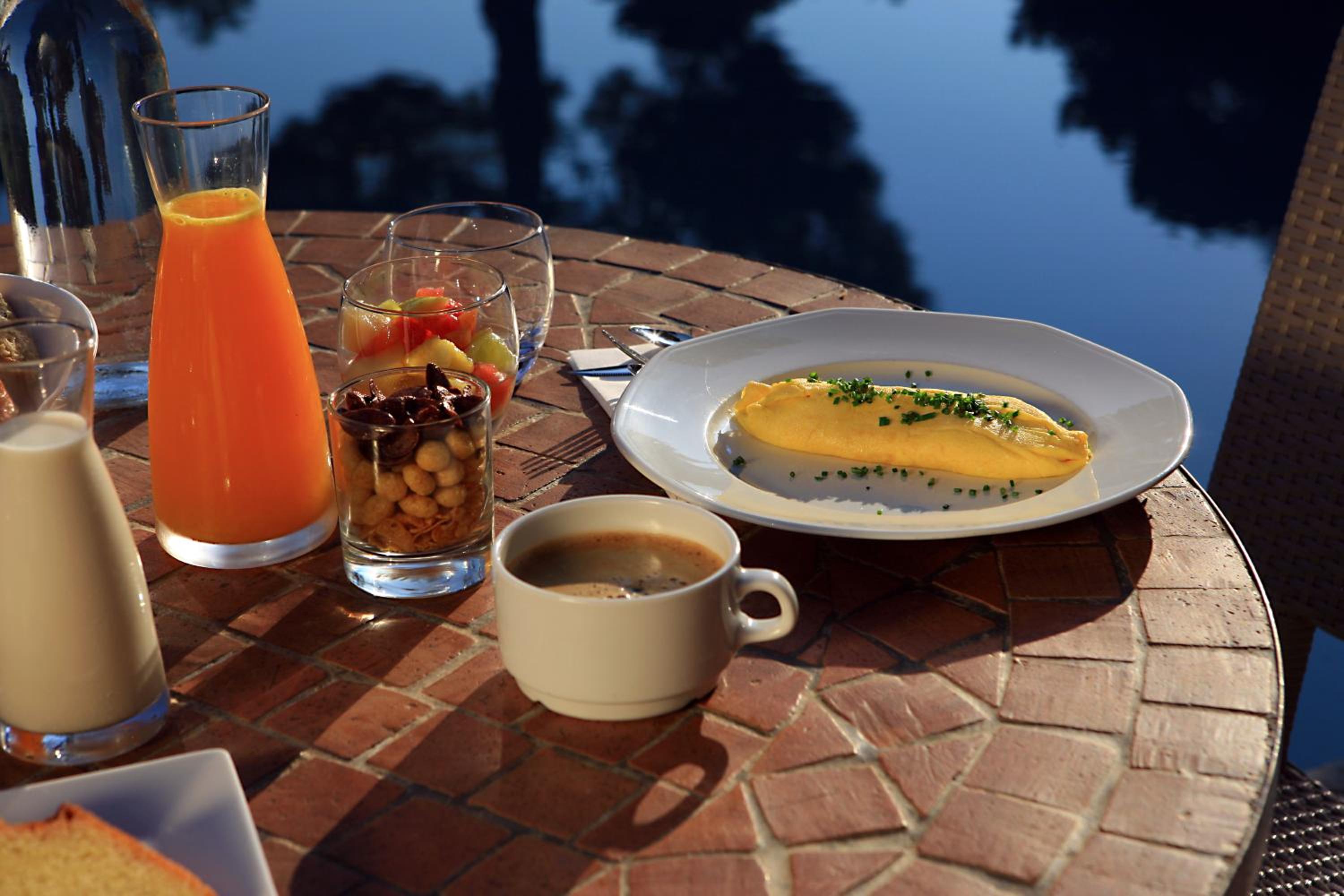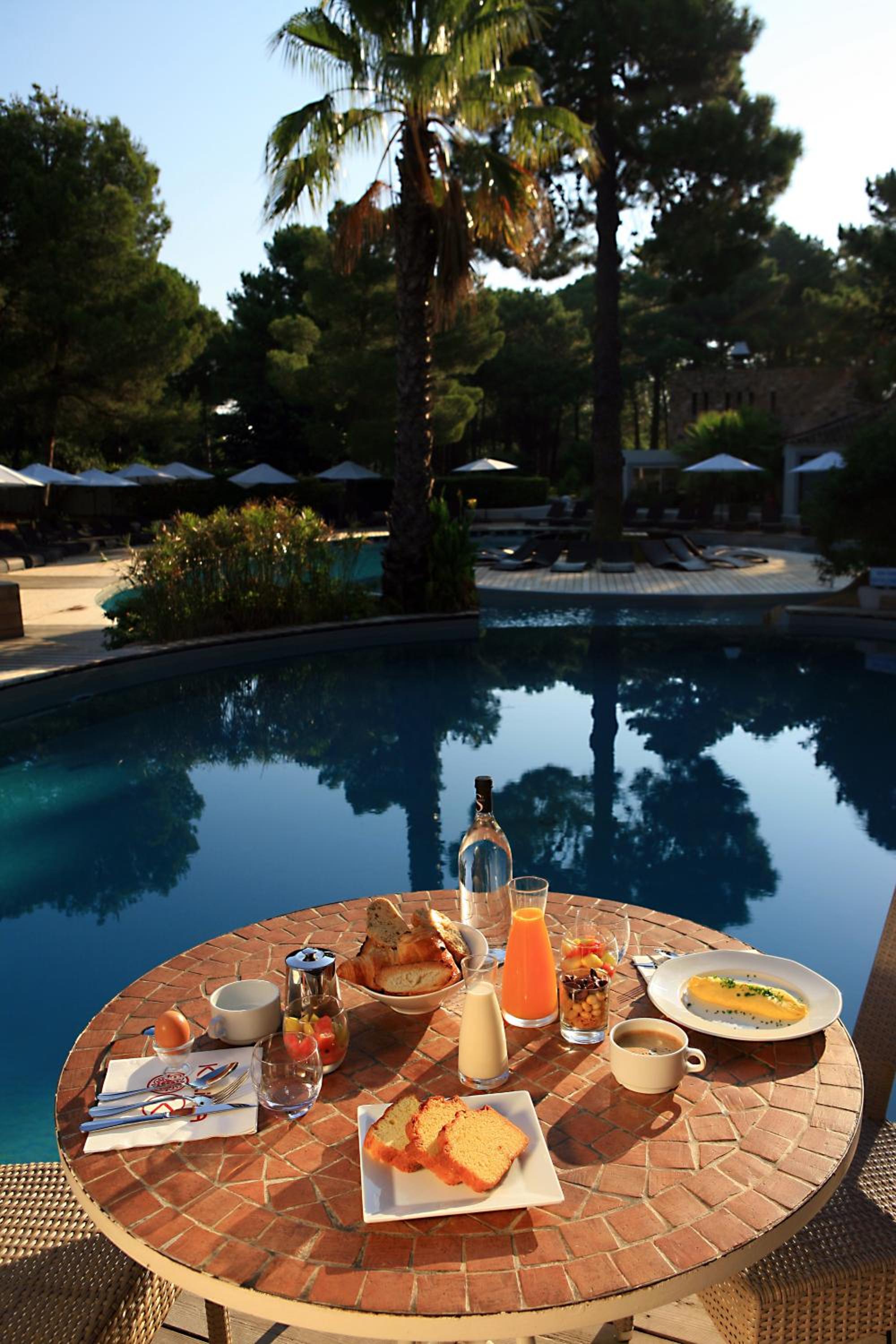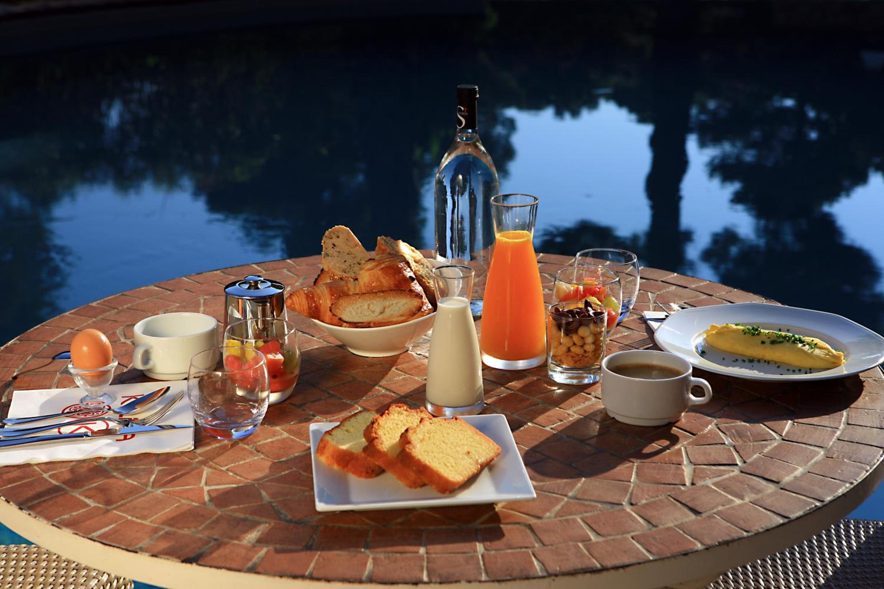Indulge in a delicious daily breakfast spread and savor delectable meals at the on-site restaurant, Le K, overlooking the inviting outdoor swimming pool.