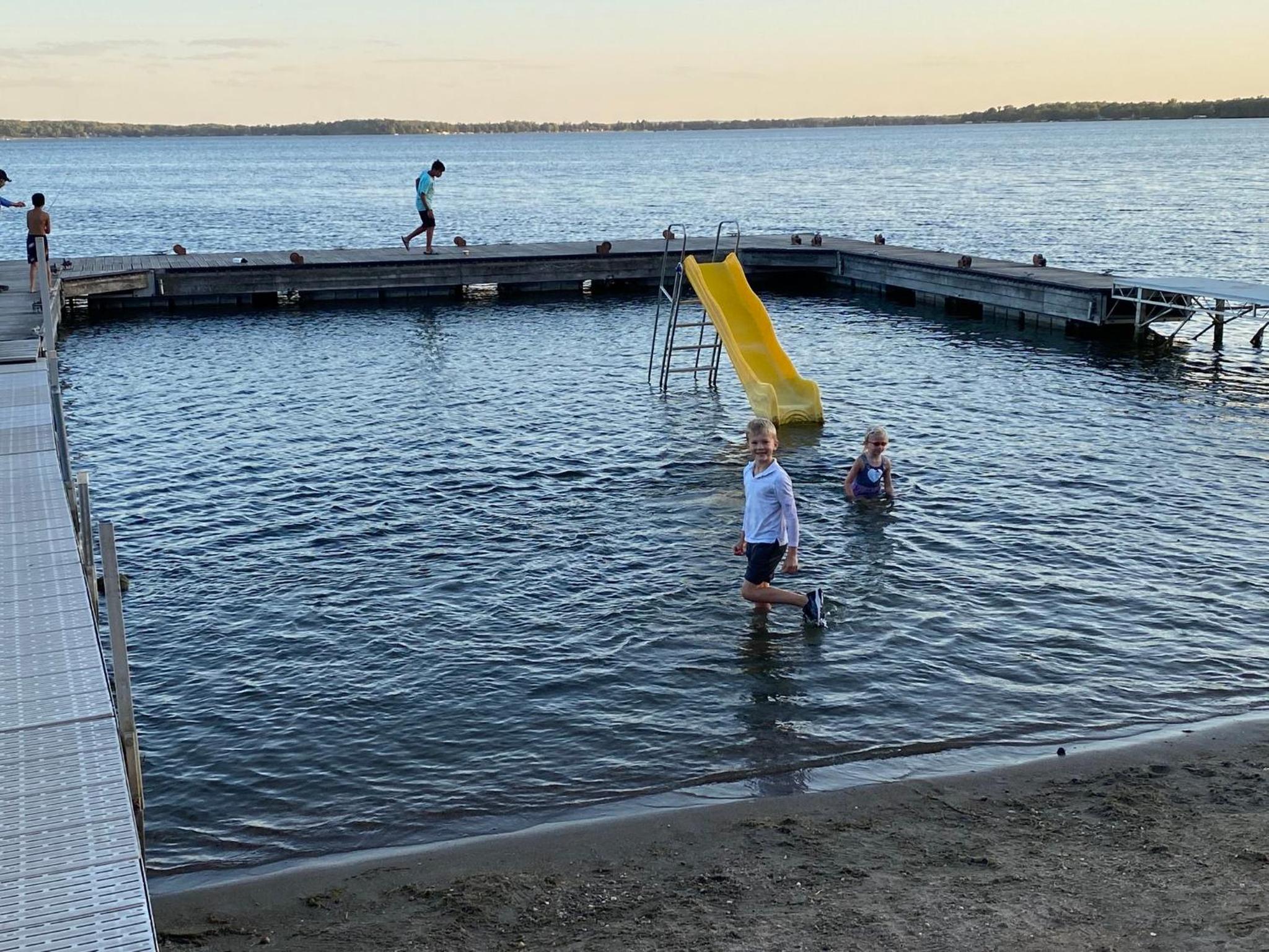 The water umbrella hot tub was warm and life jackets being provided arcade games the breakfast and sunrise veiw while eating