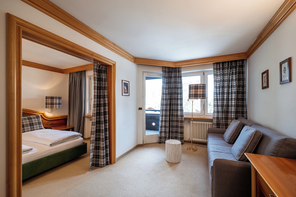 This is a great hotel. It is very well located in the middle of the Dolomites. Rooms are very nice and my bathroom had a bath tub with view to the mountains. Buffet breakfast is excellent. All staff are very friendly. Dinner was excellent three plate menu with different options to choose from every day. Fantastic food. I strongly recommend this hotel. I didn't try the indoor pool or sauna but they look great. Grazie mille!!!