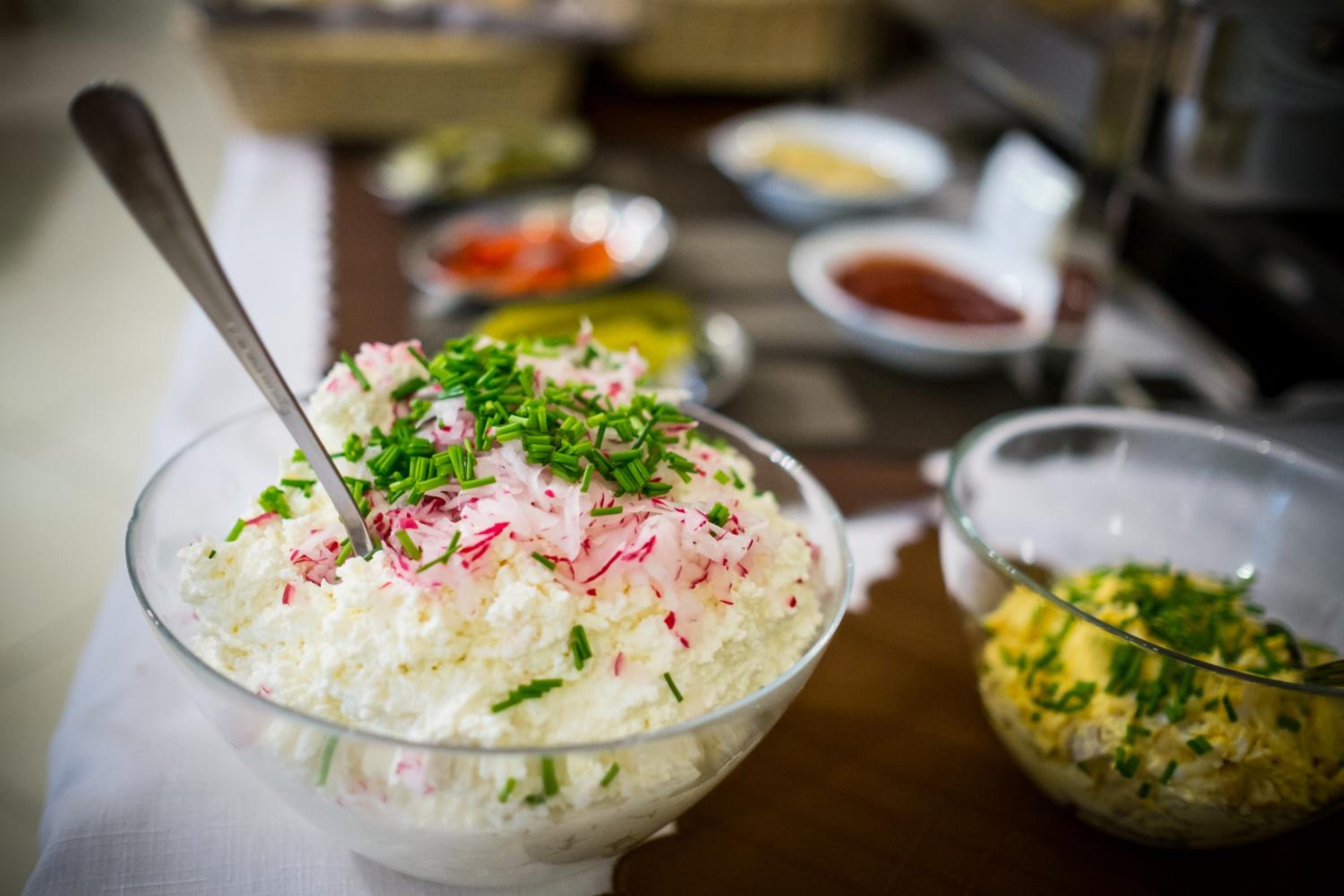 Breakfast is served in the building that houses the reception.