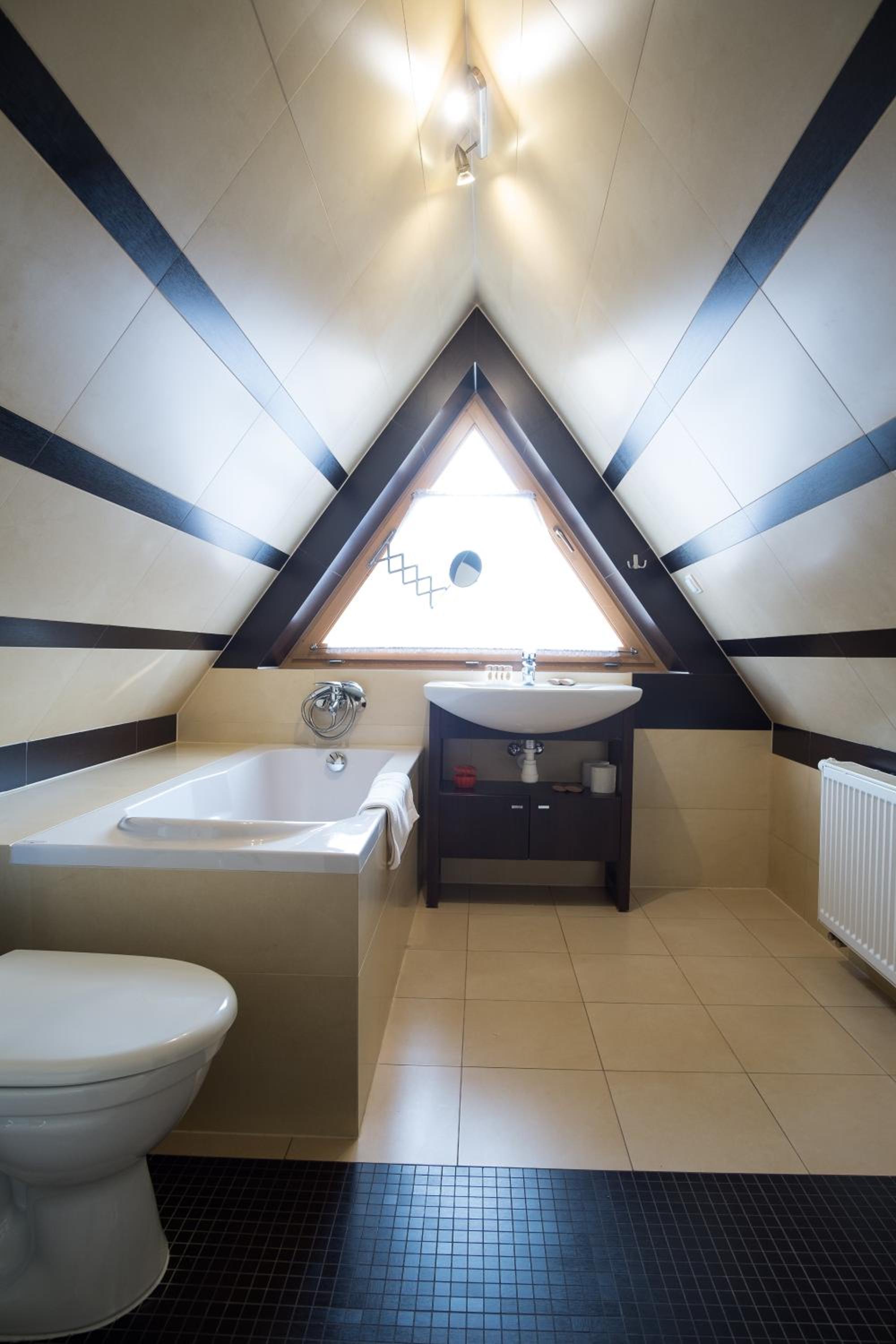 Trafiliśmy na apartament pełen skosów, niestety nie było to zbyt wygodne i wielokrotnie się o te skosy uderzaliśmy. Szczególnie w sypialni.