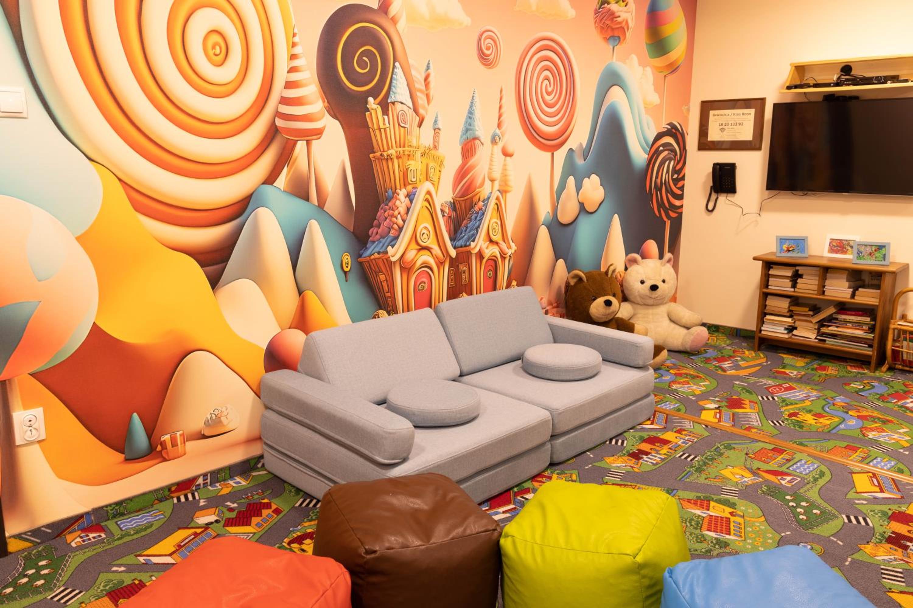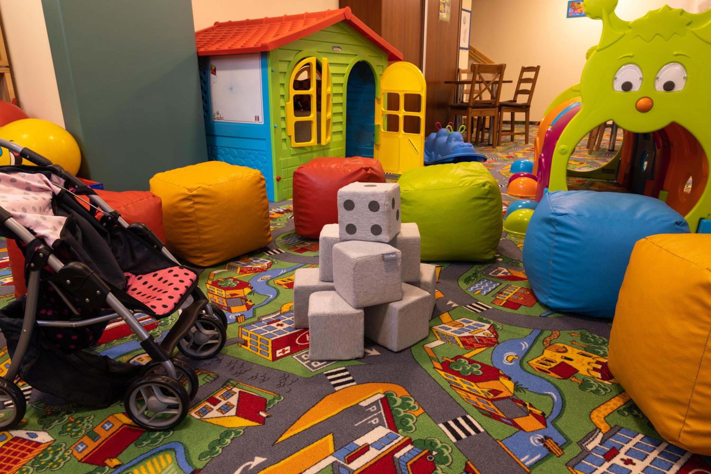 Duża sala zabaw (warto by było odświeżyć niektóre zabawki oraz dodać gry planszowe).