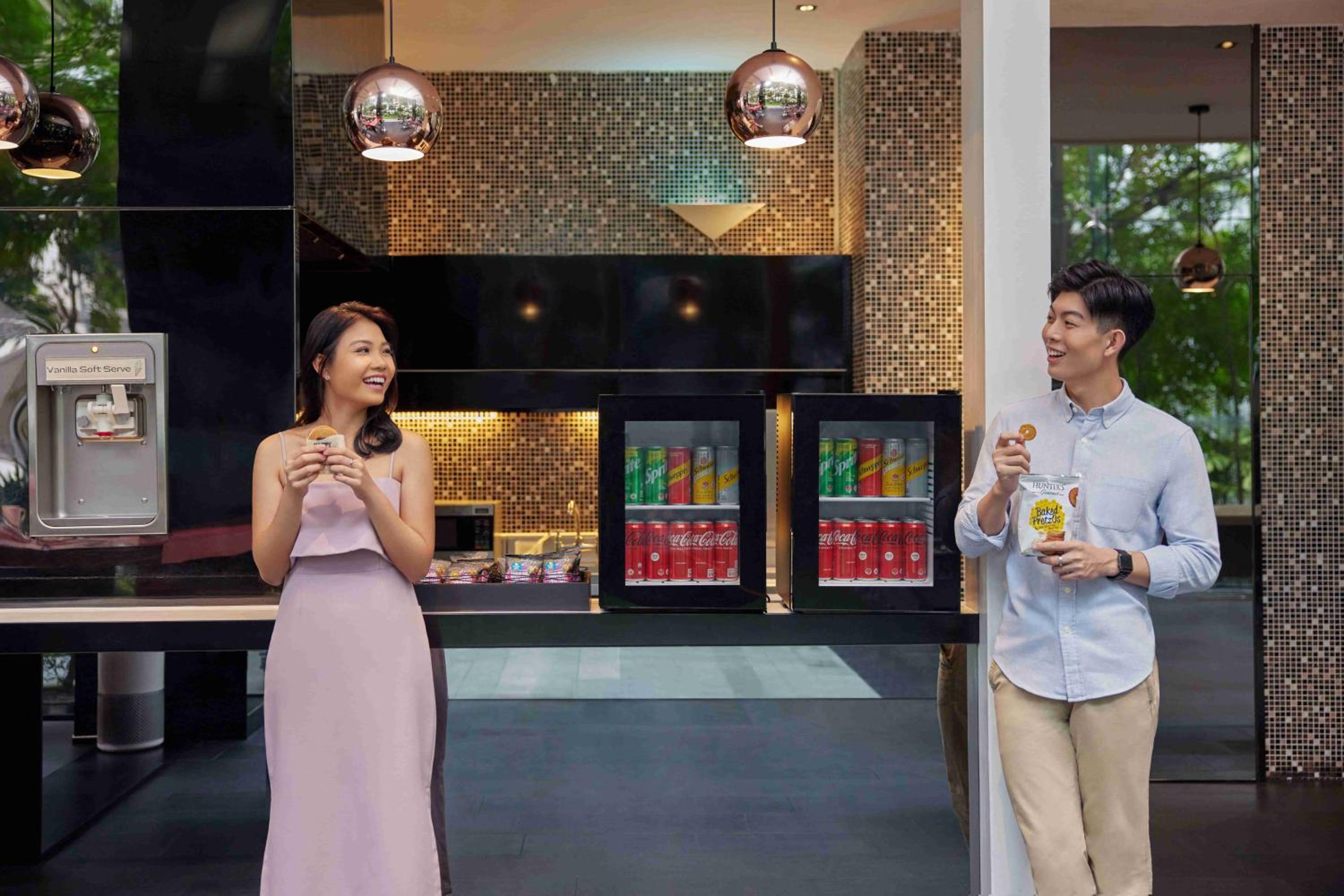 Liked the complimentary coffee & snacks (particularly the nuts) bar downstairs. And the sparkling water tap. There's even a welcome ice-cream!