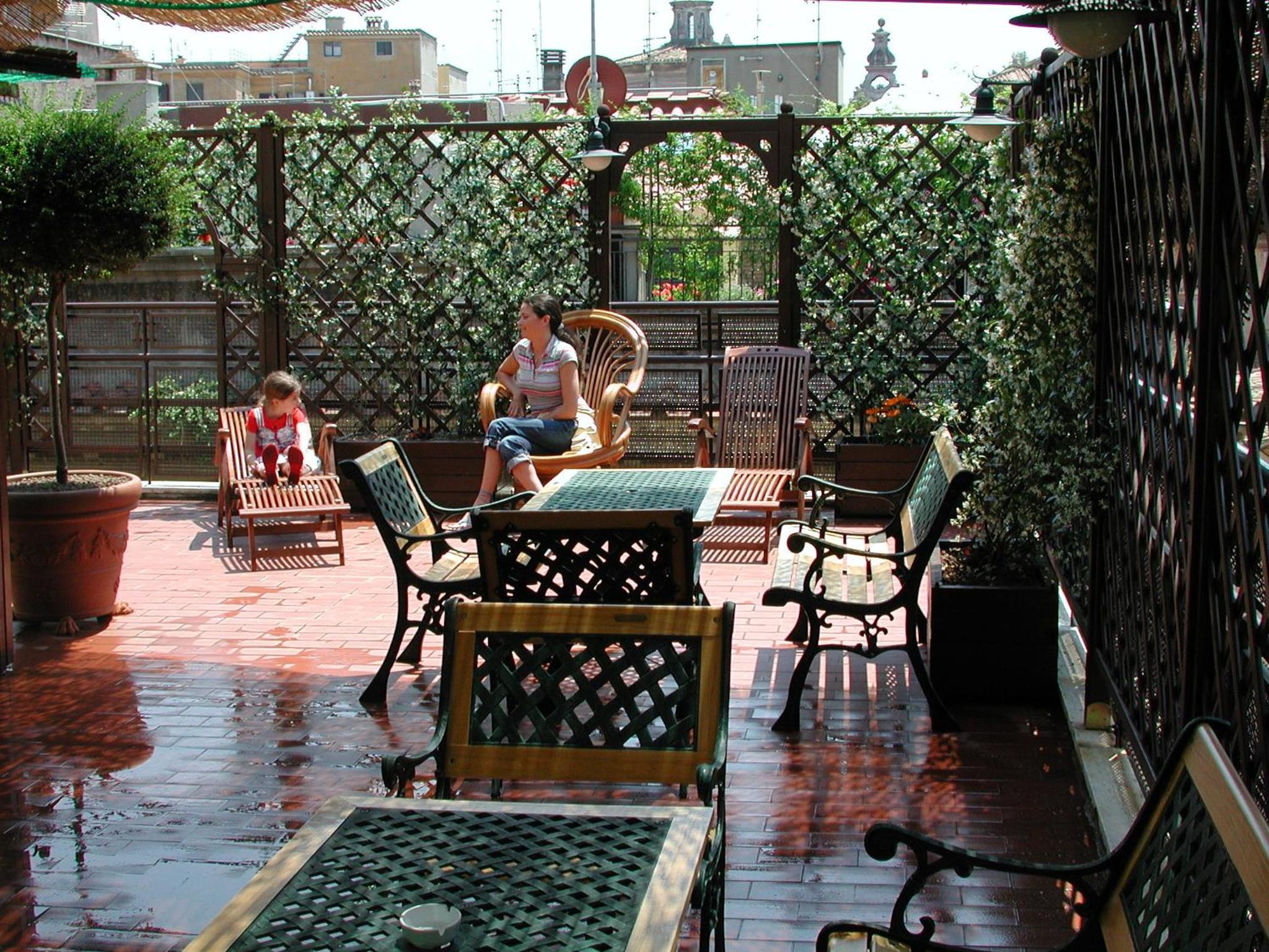 Hotel Adriatic offers a stunning roof garden with panoramic views of Rome, perfect for enjoying a relaxing evening overlooking the city.