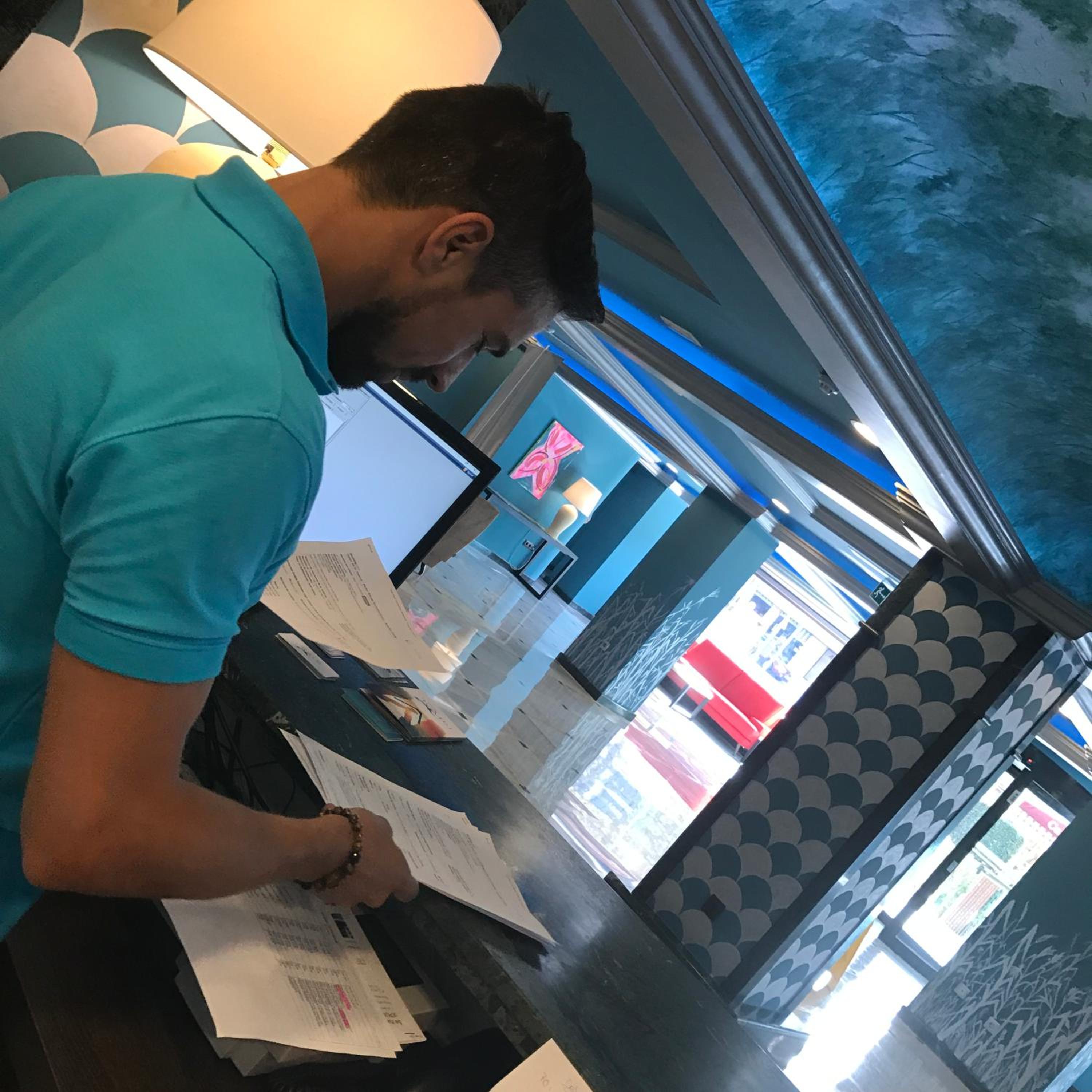 Un chico con gafas en recepción, bastante antipático y a la defensiva
