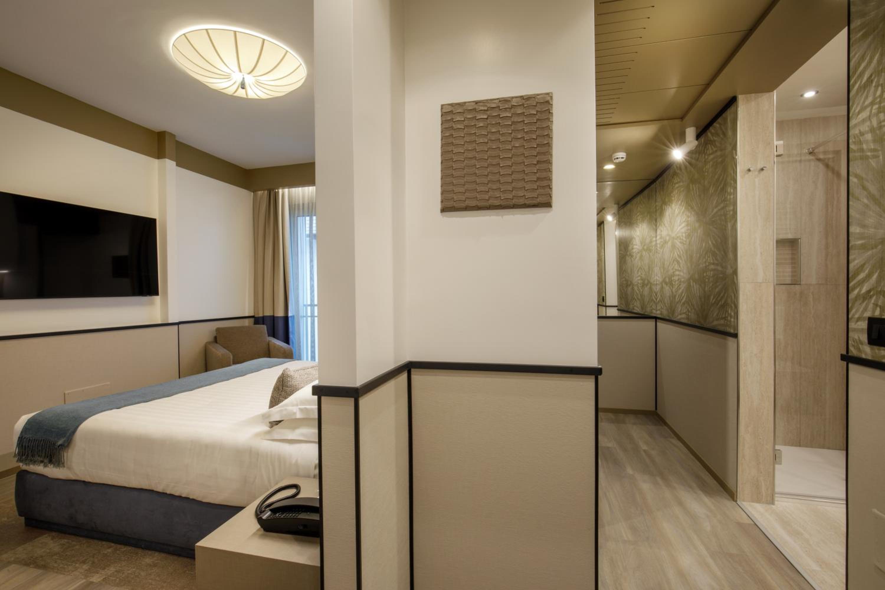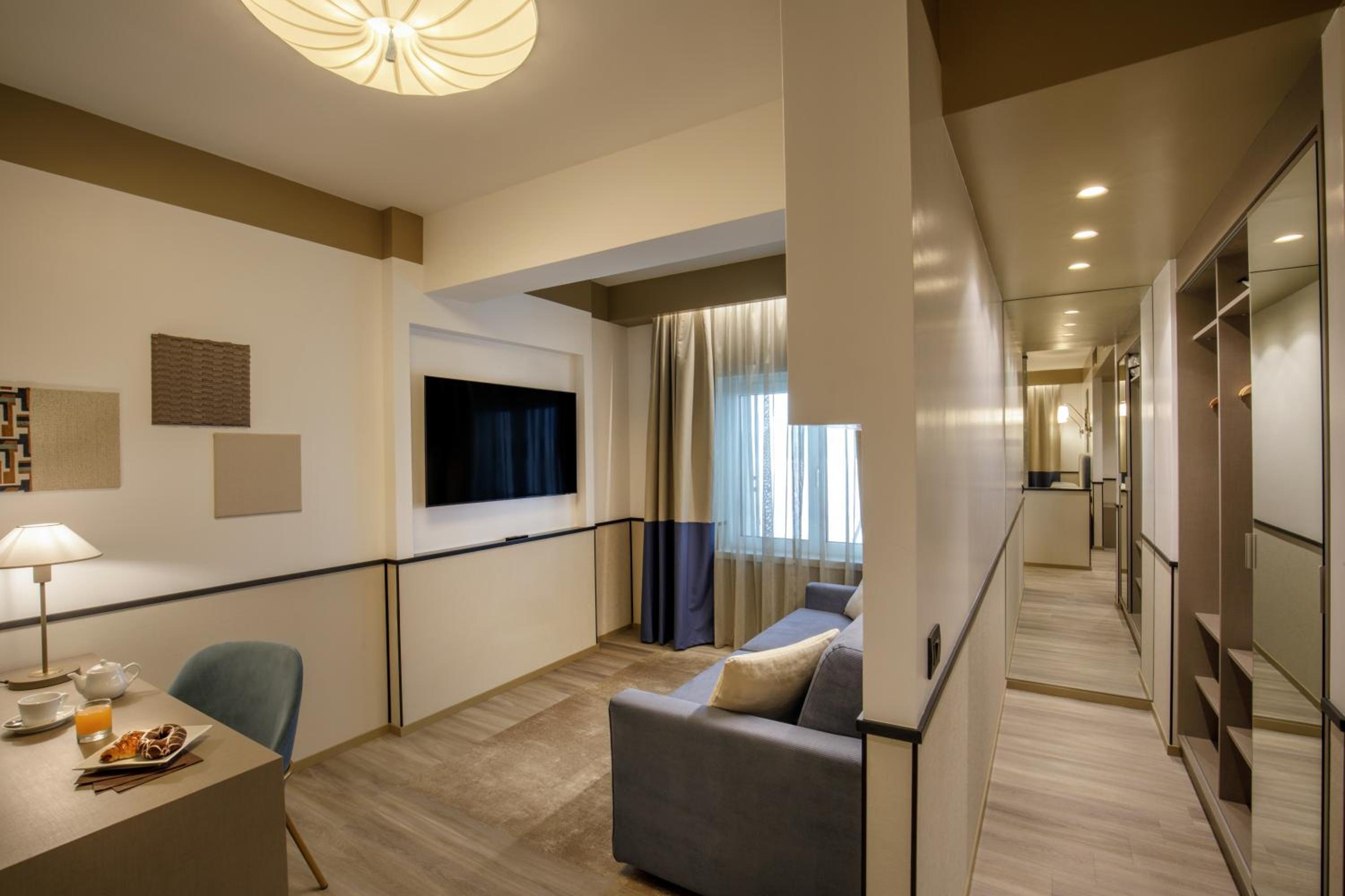 The Domidea offers a contemporary experience with its 4-star modern design rooms equipped with free WiFi and flat-screen TVs. Enjoy the convenience of staying connected and entertained throughout your stay.