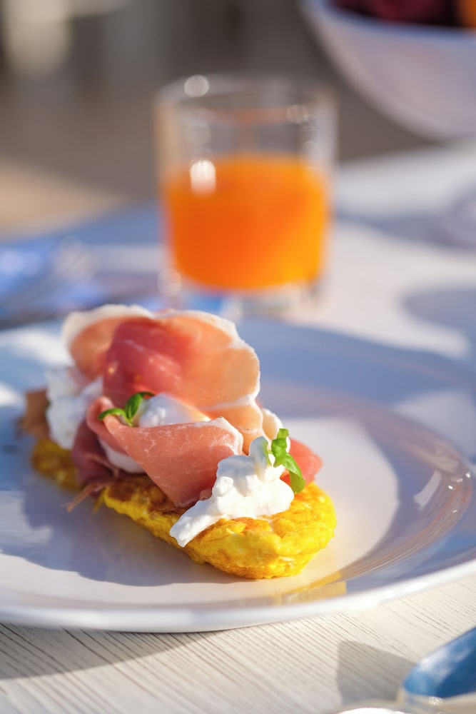 Significantly overrated hotel, belongs in the 3 stars /low 4 stars category. Rooms/furniture are very old, used. Food is around a weak taverna. But the taverna would use fresh ingredients. This hotel (dinner) lives from defrosting. Service peaple are not trained, have low attention to customers. Reception is okay however. Still, no recommendation, far too expensive for what they offer and really to poor food quality for Italy. Don't waste your vacation days.