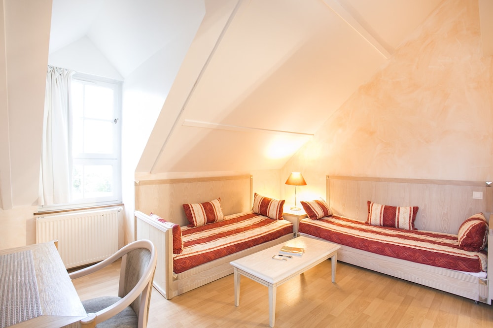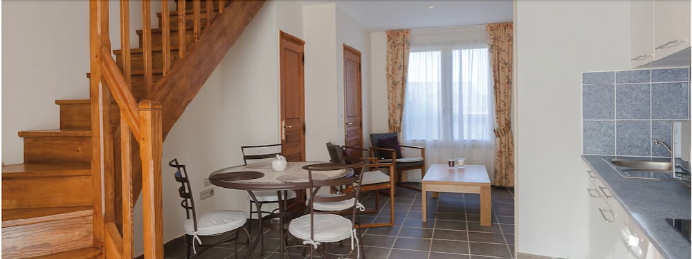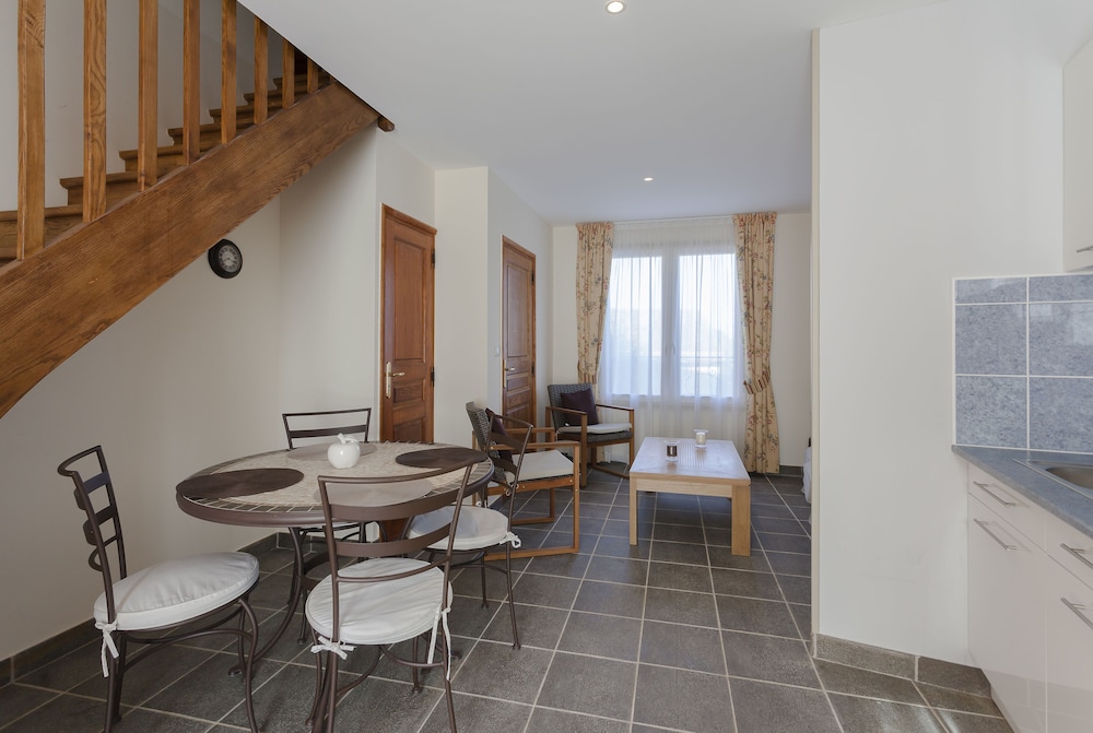 Agréablement surprise par le studio que nous avions réservé ... il était très bien équipé (linge de bain, micro-onde, lave vaisselle, vaisselle, réfrigérateur, bouilloire, grille-pain, etc.) et l’emplacement est chouette, tout près du golf, les bâtisses ont du caractère.
