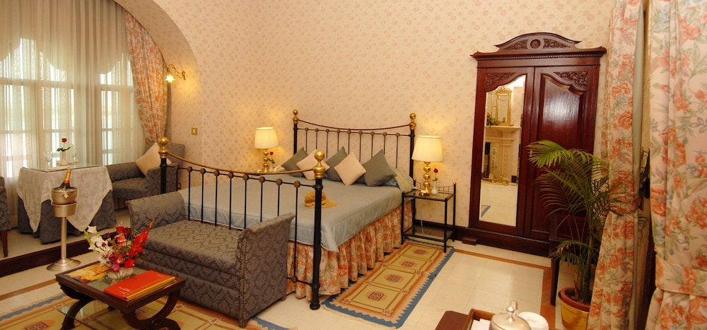 Relax in one of the 44 air-conditioned rooms with a private balcony and premium bedding. Stay connected with complimentary wired and wireless internet access. This historic hotel is conveniently located near key attractions like Gajner Lake and Junaghar Fort.