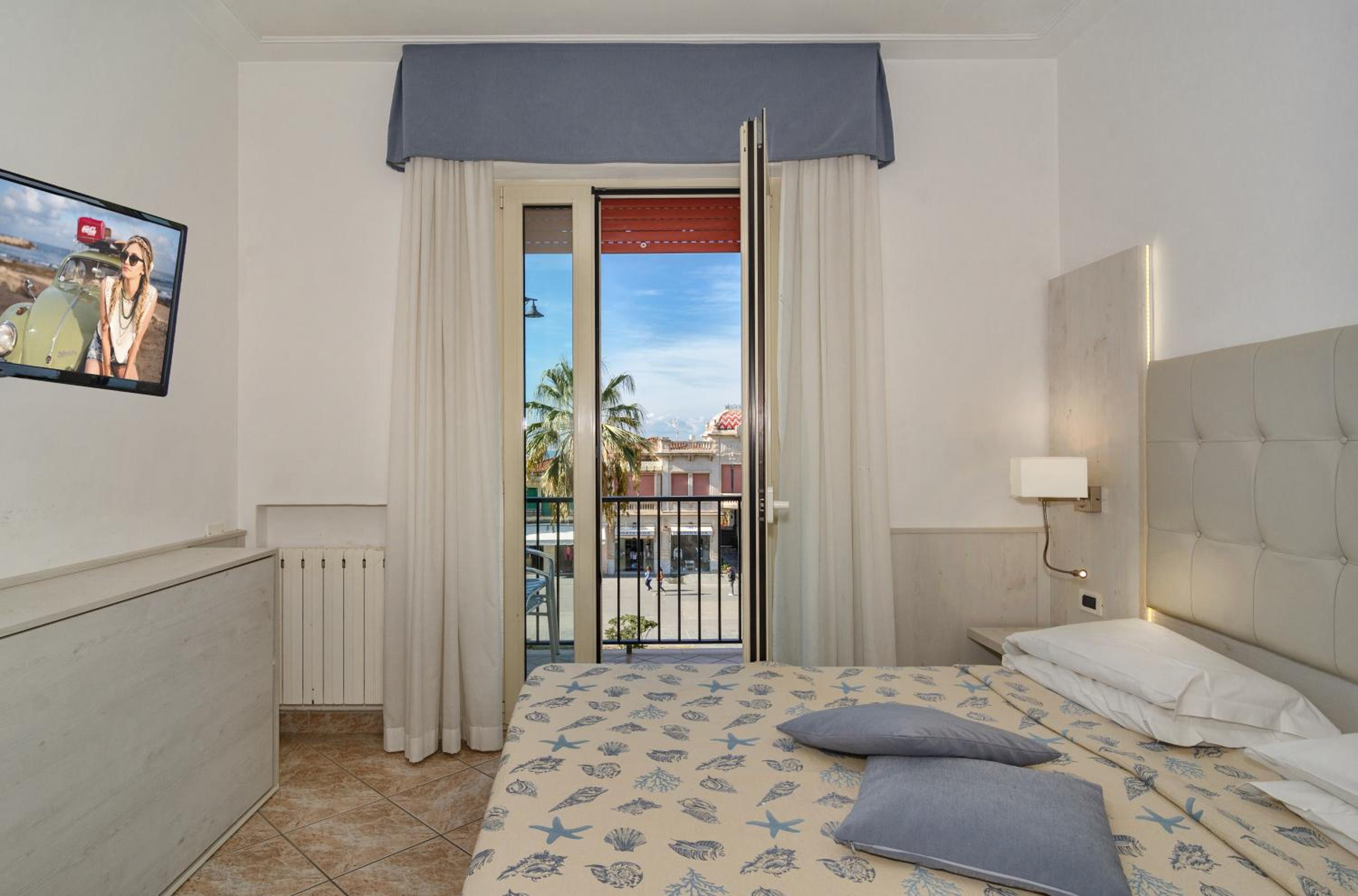 Hotel Bella Riviera Lungomare in Viareggio offers picturesque views of the Mediterranean Sea. The air-conditioned rooms provide a comfortable stay with options to overlook the bustling main street or the serene sea.