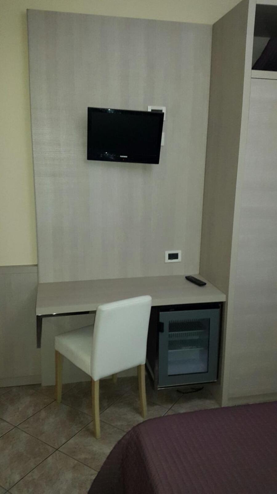 Frigo bar vuoto e in mezzo alla camera già piccola e non nel suo vano vuoto; neanche una bottiglietta di acqua a disposizione; in camera nessuna ulteriore coperta in armadio