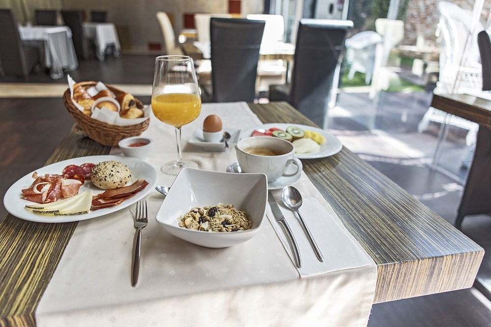 Excellent hotel with atmosphere and interesting rooms both public and bedrooms. Good restaurant with some flair, excellent breakfast. Lots to see in the town including a great castle and porticoed buildings