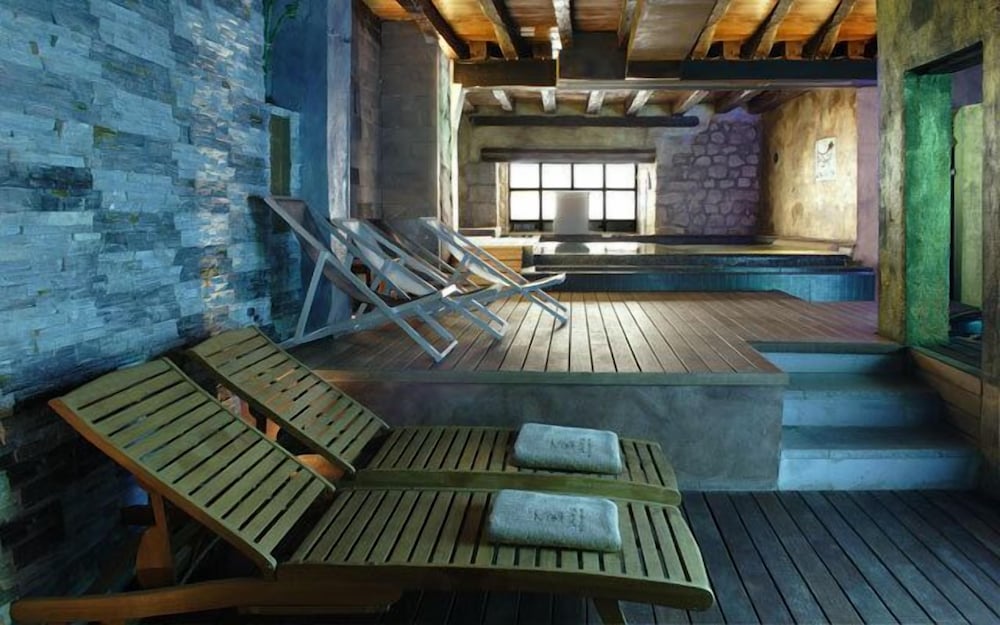 El hotel es una antigua abadía que ha sido reformada sin perder el encanto y la esencia propias. Las habitaciones son muy amplias y están decoradas acorde con el estilo, lo cual hace que este alojamiento sea maravilloso y particular. Para una escapada en familia o pareja es perfecto. El pueblo es muy tranquilo y acogedor, nos quedamos con ganas de visitar más lugares de los alrededores en otra época del año. Además las dos recepcionistas que nos atendieron fueron perfectas, siempre con una sonrisa y dispuestas a ayudar.