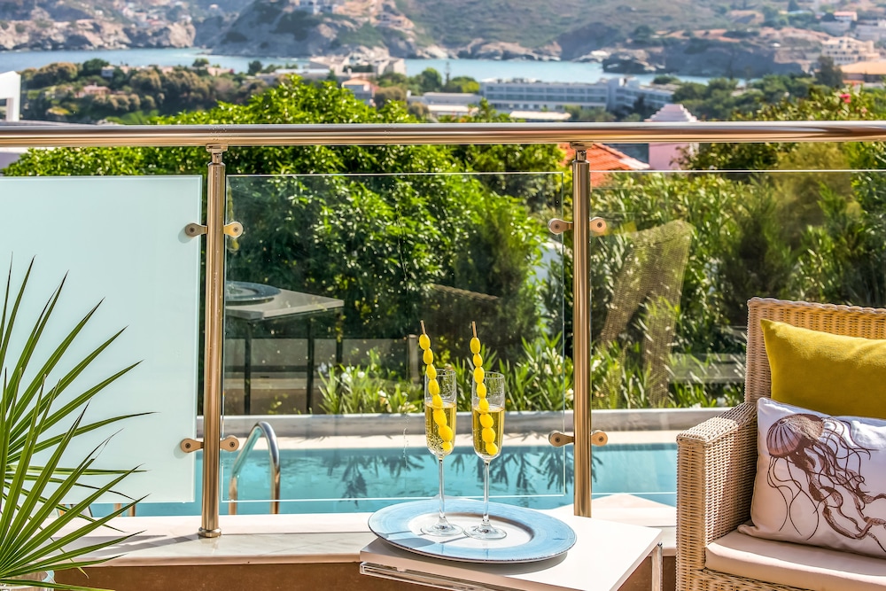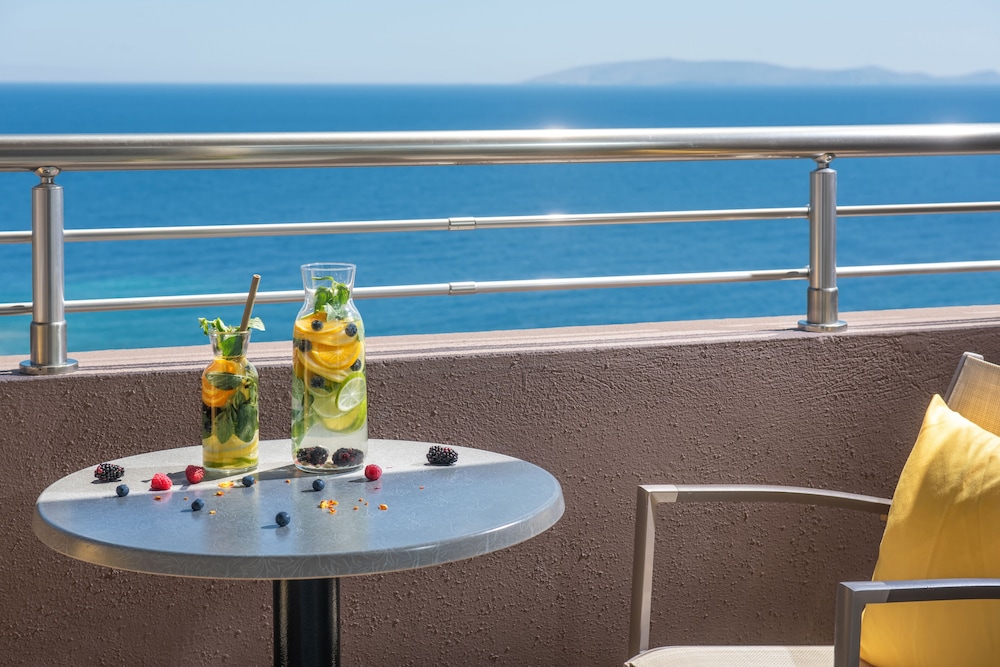 Balanced by: The hotel really needs to read its reviews. It's all inclusive offer is essentially beer, wine, soft drinks (all reasonable) but then only ozo or raki options. Just seems really unnecessary. The food is ok.